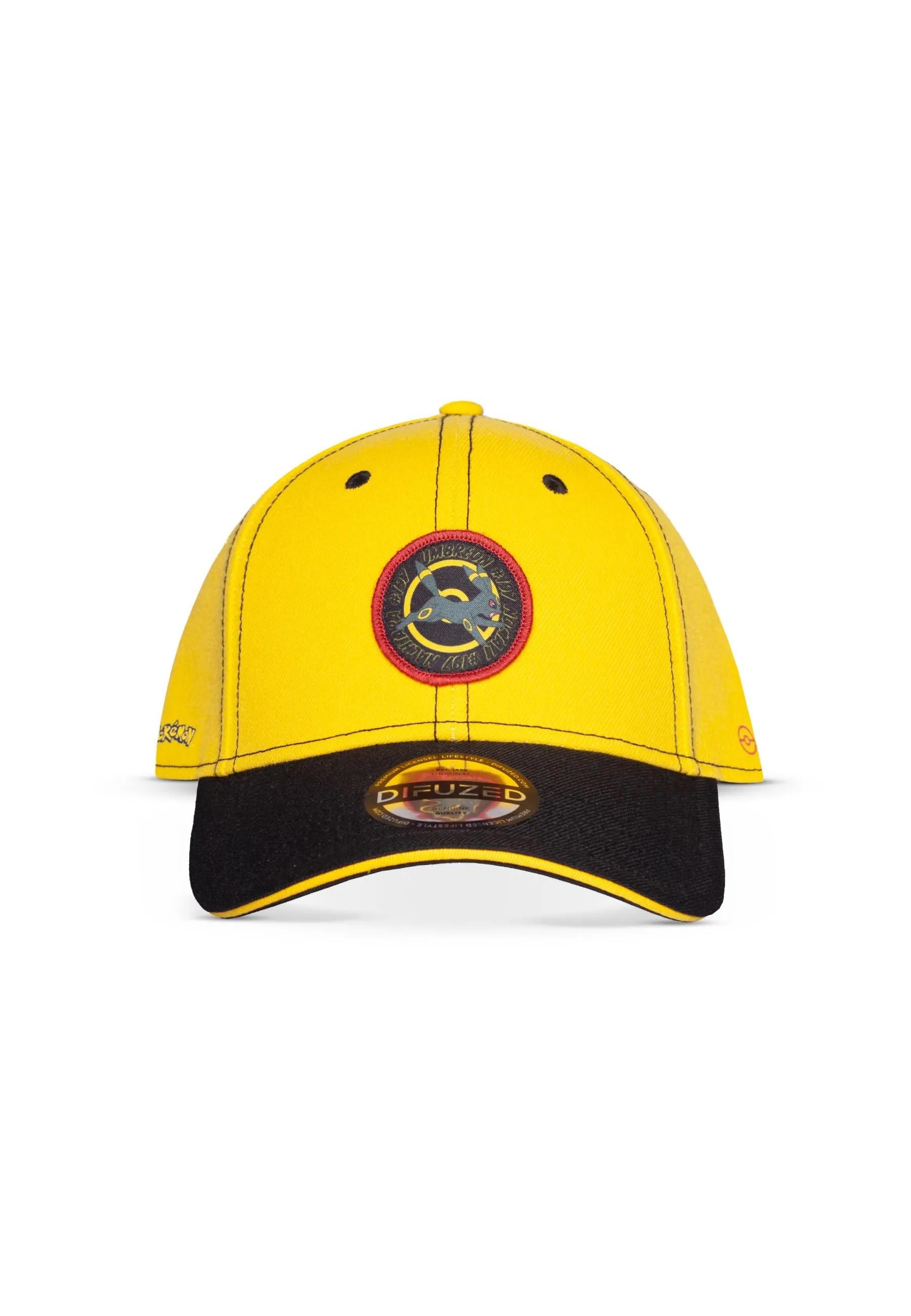 Cette casquette de baseball de haute qualité présente une couronne jaune vif et une visière noire contrastante, ce qui en fait un accessoire élégant pour tout fan de Pokémon. L'avant de la casquette arbore un patch détaillé avec le Pokémon Noctali, entouré d'un texte thématique. Conçue pour le confort et un ajustement sûr, cette casquette est parfaite pour un usage quotidien ou pour ajouter une touche de fandom à une tenue.