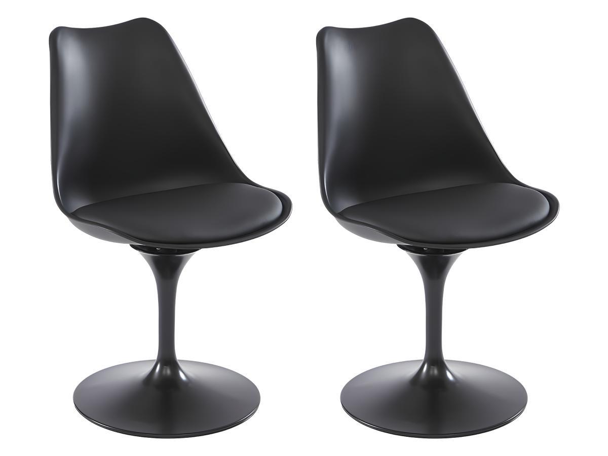 Vente-unique, Lot de 2 chaises en polypropylène, simili et métal - Noir - XAFY