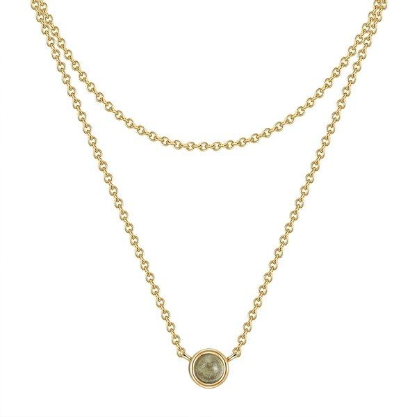 Aimez-vous le scintillement irisé de Labradorit? Ensuite, la chaîne de pierre de guérison des lois de Munich vous inspirera! La pierre précieuse populaire augmenterait la créativité et l'intuition et a un effet d'équilibrage. Encadré par une version en filigrane, il est au centre de la conception de la chaîne à double room, ce qui fait de votre clivage un eycatry. La prise et la chaîne d'ancrage sont faites en argent sterling poli bien brillant et raffiné avec de l'or jaune classique. Le confort ne laisse pas non plus à désirer: grâce à une courte pièce d'extension, vous pouvez facilement régler la longueur.