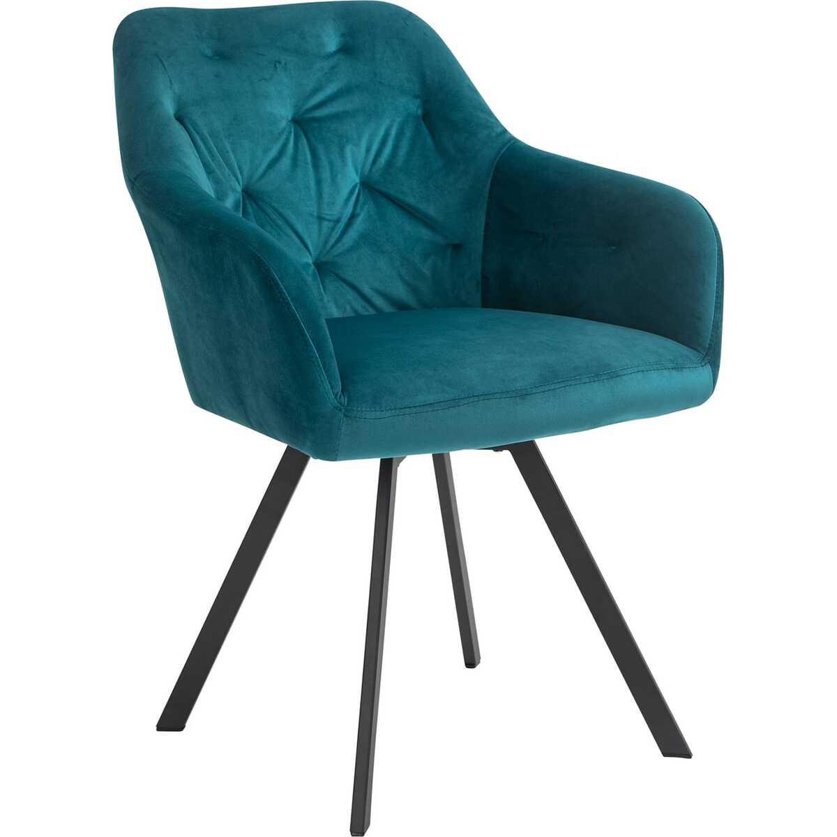 Une touche chic - Cette chaise à accoudoirs glamour à l'aspect velours attire particulièrement l'attention dans la salle à manger. Le rembourrage généreux de l'assise et des accoudoirs assure un confort d'assise optimal, le look haut de gamme est complété par le piquage des boutons dans le dossier et le piètement robuste composé de quatre pieds biseautés en métal noir laqué par poudrage. Le petit plus de la chaise : la fonction de rotation à 360°, qui assure liberté de mouvement et confort. La chaise devient ainsi non seulement une solution optimale pour la table à manger, mais fait également bonne figure sur le bureau ou la coiffeuse. Pour que la chaise puisse s'intégrer harmonieusement dans de nombreux styles d'habitat, elle est disponible en plusieurs couleurs.Avec plateau tournant à 360° sous l'assise, hauteur d'assise : 48,5 cm, profondeur d'assise : 44 cm, hauteur des accoudoirs : 65 cm.Fauteuil glamour à l'aspect veloursPlaque tournante à 360° sous l'assiseRembourrage généreux pour un confort d'assise optimalAvec couture décorative à boutons dans le dosPiétement robuste en métal noir revêtu par poudreRevêtement en velours, pieds en métal noir revêtu par poudre