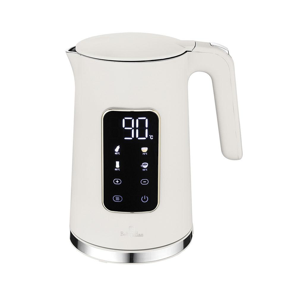 Avec la bouilloire Berlinger Haus, tu apportes style et technique dans ta cuisine. Le design crème mat s'adapte parfaitement aux intérieurs modernes. Grâce à l'affichage numérique et aux touches tactiles, tu sélectionnes facilement la température adéquate - que ce soit 40 °C pour les aliments pour bébés ou 90 °C pour le thé et le café. Le récipient de 1,7 litre suffit facilement pour plusieurs tasses. La fonction de maintien au chaud veille à ce que ton eau reste chaude longtemps. Le boîtier reste frais à l'extérieur et protège des brûlures. Avec 2200 watts, l'eau est prête en un clin d'œil. La bouilloire est sans fil, peut être tournée à 360° et s'éteint automatiquement - tu as ainsi plus de confort et de sécurité au quotidien.