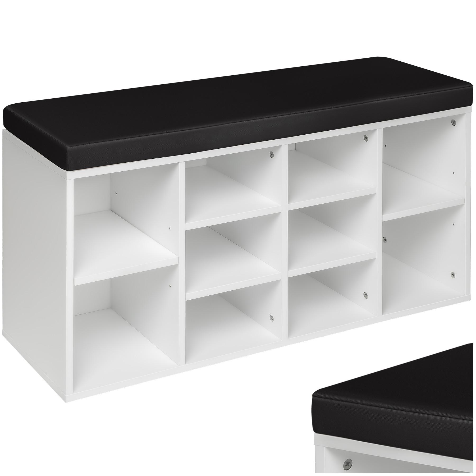 En manque de place pour ranger vos souliers ? Notre meuble à chaussures banc tectake est fait pour vous ! Cette armoire à chaussures est équipée d'un coussin confortable : vous avez donc un banc tout prêt pour vous asseoir et enfiler vos chaussures. Placez-le dans l'entrée pour pouvoir vous déchausser en rentrant chez vous ou bien dans une chambre ou un dressing. La taille des niches extérieures est ajustable, vous pouvez y loger facilement bottes, bottines, escarpins, baskets et chaussons. Jusqu'à 10 paires de vos chaussures préférées trouveront leur place dans notre meuble. Astuce : installée dans une chambre d'enfant notre étagère à chaussures est idéale pour ranger les jouets de vos tous petits.