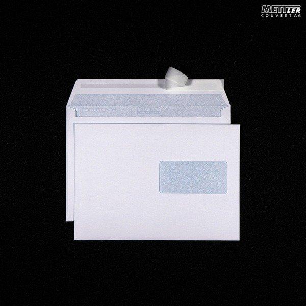 Briefcouvert Das Briefcouvert mit Fenster und einem selbstklebenden Haftverschluss hat einen Innendruck und ist ideal für den täglichen Gebrauch. Fenster auf rechter Seite Hochweiss SwissMade