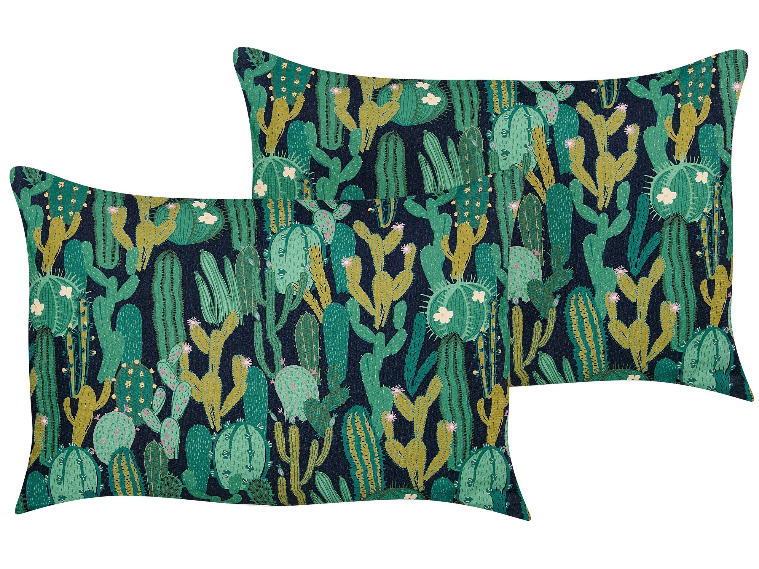 Set de 2 coussins d'extérieur. Adoptez le chic inspiré du désert dans votre décor avec ces deux coussins ornés d'un motif de cactus très tendance. Parfaits pour l'intérieur et l'extérieur, ils ont été fabriqués et remplis de polyester résistant pour un confort accru. L'entretien est facile grâce aux housses amovibles et lavables à la main.