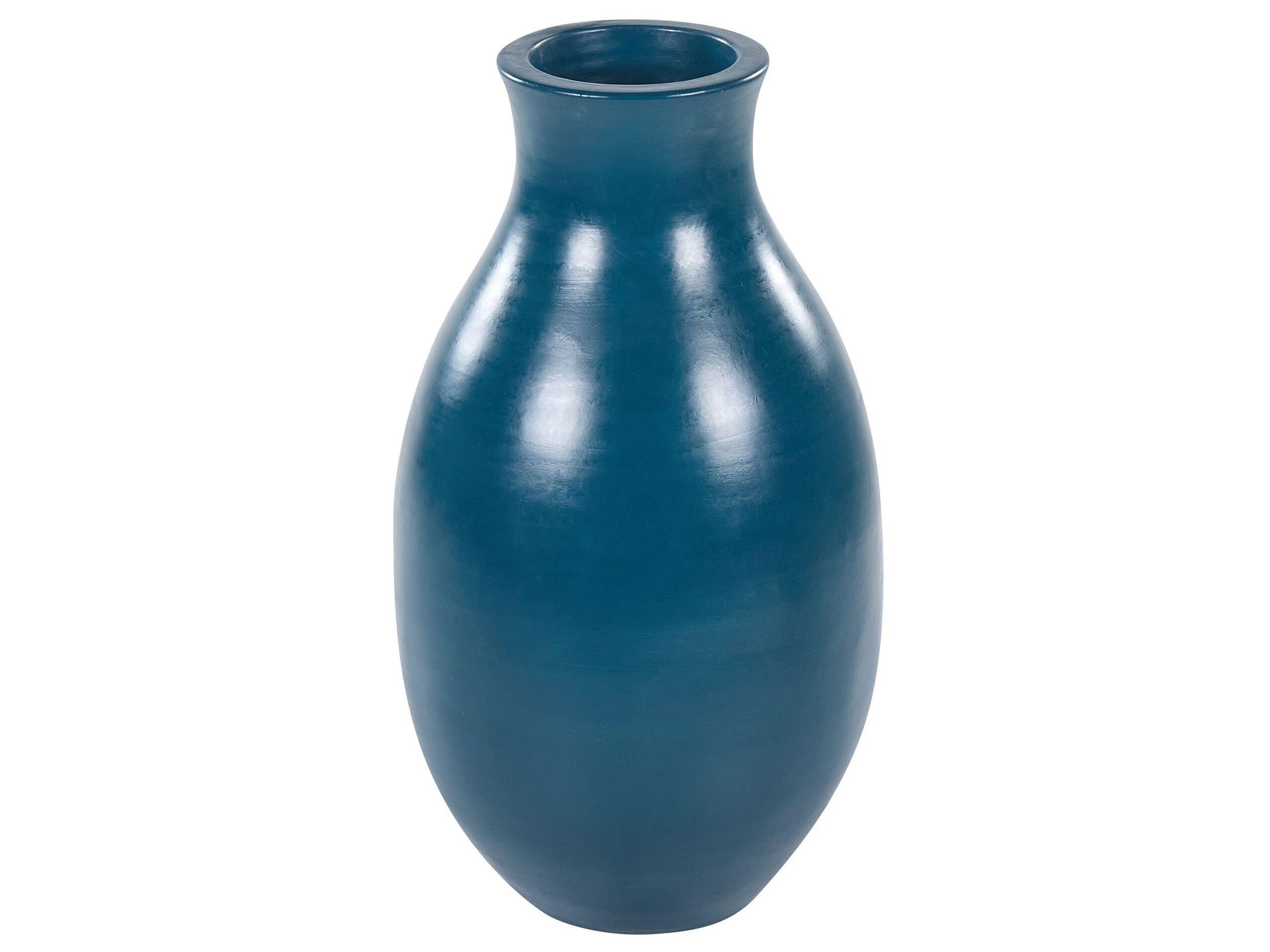 Récipient en terre cuite. Ce joli vase est idéal pour ajouter une touche de couleur à votre intérieur. Sa couleur bleu foncé accroche le regard et en fait une pièce de choix, que ce soit sur une table ou sur le sol. Le vase est fabriqué à la main en terre cuite et présente une forme simple qui s'adaptera à tous les intérieurs modernes.
