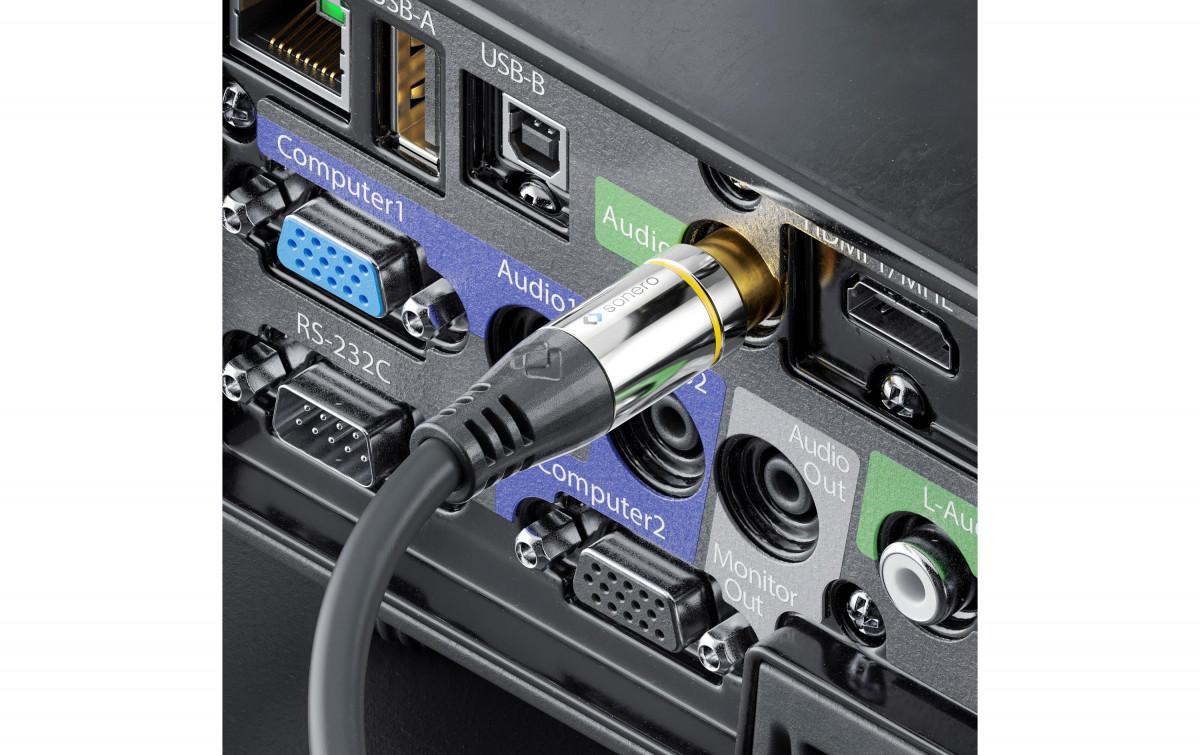 Type de câble : câble de connexion, connexion audio côté A : Cinch, canaux audio : stéréo, connexion audio côté B : Cinch, couleur détaillée : noir, longueur : 3 mNormes audio prises en charge : Dolby Digital Plus, Dolby TrueHD, DTS-HD Master Audio, DVD Audio, SA-CD, etc.Câble S/PDIF coaxial Sonero Premium pour la transmission audio numériqueConducteurs en cuivre pur, triple blindage pour une protection optimale contre les interférences et les ondes radio, diamètre extérieur : 5,5 mm PVCConnecteurs en aluminium chromé, contacts plaqués or garantissant une connexion optimale et une qualité de transmission maximale, protection flexible contre les plisType de câble : câble de connexion, couleur détaillée : noirCinch vers Cinch, longueur : 3 m