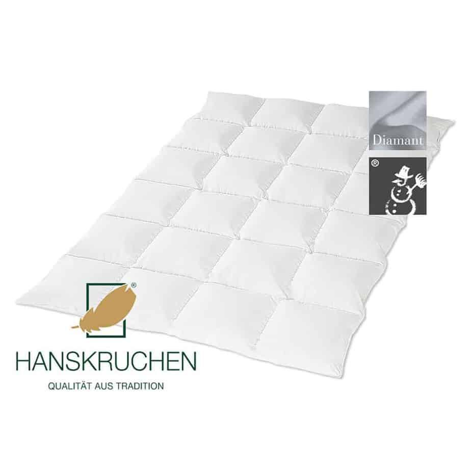 Das Unterbett Diamant de Luxe von Hanskruchen setzt sich aus hochwertigen deutschen Entendaunen und speziell gefertigten Micro Softys in optimaler Abstimmung zusammen. Die besonders großflockigen Daunenfedern in spezifischer Umhüllung aus feinstem Batist liefern hierbei ein einzigartiges Bettzubehör der Spitzenklasse. Absolut Ressourcen und Umwelt schonende Verfahren zur Reinigung des ursprünglichen Naturprodukts tragen des Weiteren zu einer nachhaltigen Produktion der luxuriösen Bettauflage bei. Eine überaus flauschige Haptik der Daunenfüllung sorgt außerdem für ein behagliches Kuschelgefühl. Diese edle Füllung sichert überdies eine wohltemperierte Produkteigenschaft mit wärmender Wirkung im Winter und angenehmer Kühlung bei den Tropennächten im mitteleuropäischen Sommer.