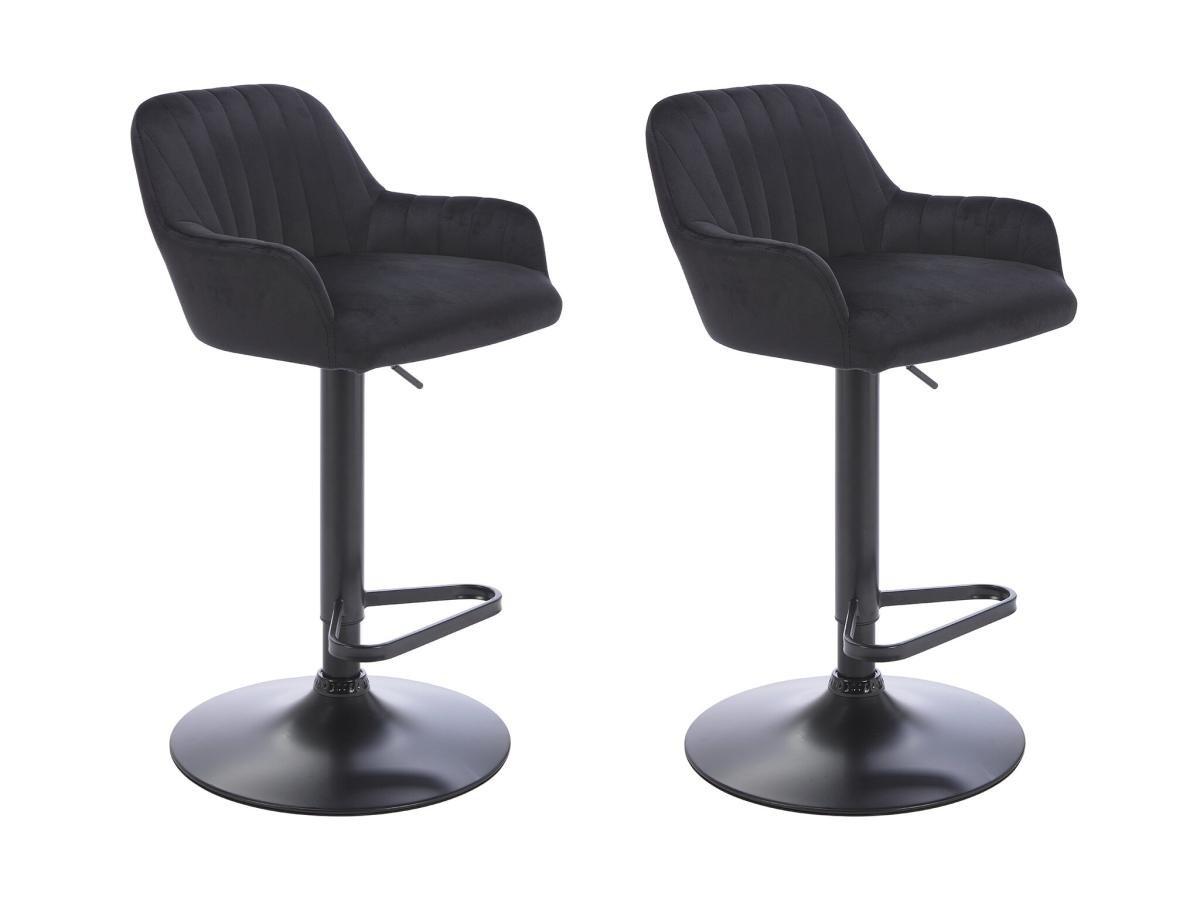 Vente-unique, Lot de 2 tabourets de bar en velours et métal - Hauteur réglable - Noir - ELEANA