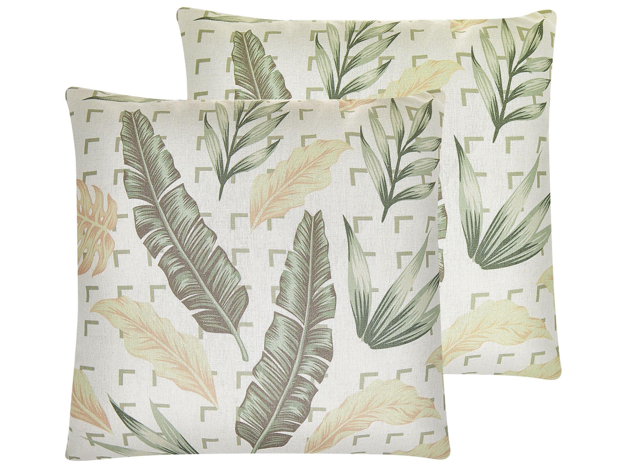 Coussins décoratifs avec imprimé feuillage. Sublimez votre intérieur à l'aide de cet ensemble de coussins décoratifs. Le design à motif feuillage des coussins s'intégrera parfaitement à un intérieur style boho et donnera un aspect unique à votre espace de vie. Les housses sont faites de polyester résistant et de coton et de lin mélangés et peuvent être facilement retirées pour le nettoyage.