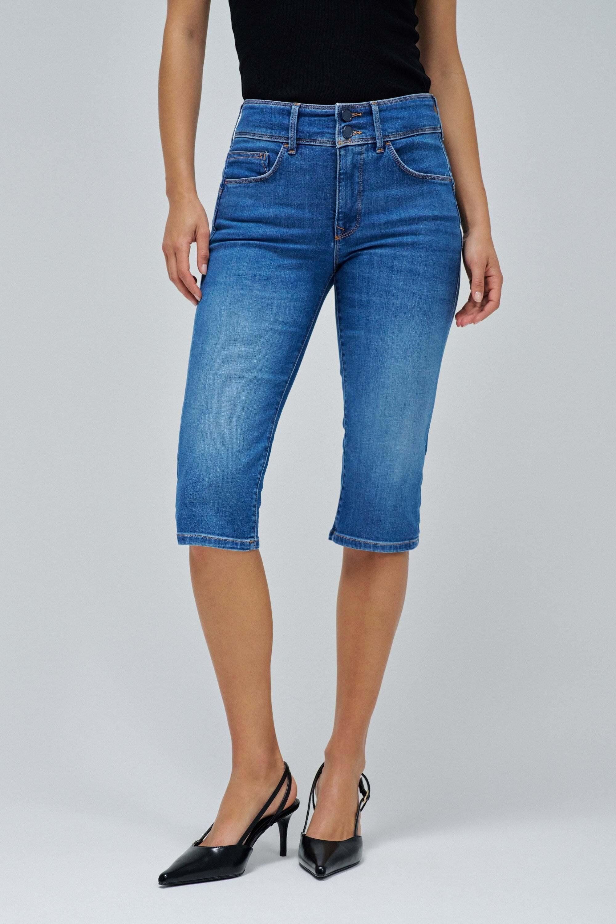 Le bermuda Secret Denim en Medium Light séduit par sa coupe slim et son design classique à 5 poches qui lui confère un look moderne. L'effet push-in offre une coupe près du corps, tandis que la double fermeture à boutons ajoute une touche de style supplémentaire.
