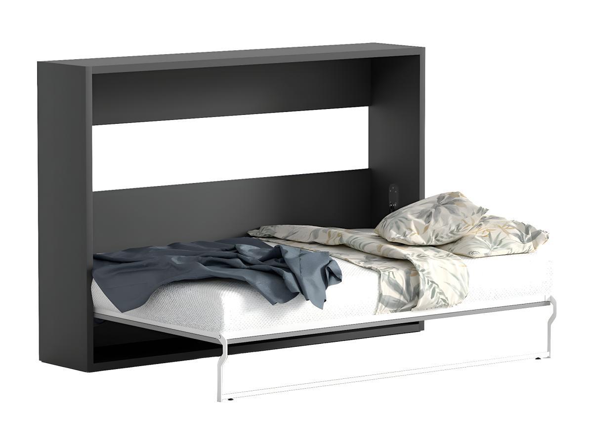 Vente-unique Lit escamotable 140 x 200 cm - Ouverture horizontale manuelle - Anthracite et naturel - MALINA II