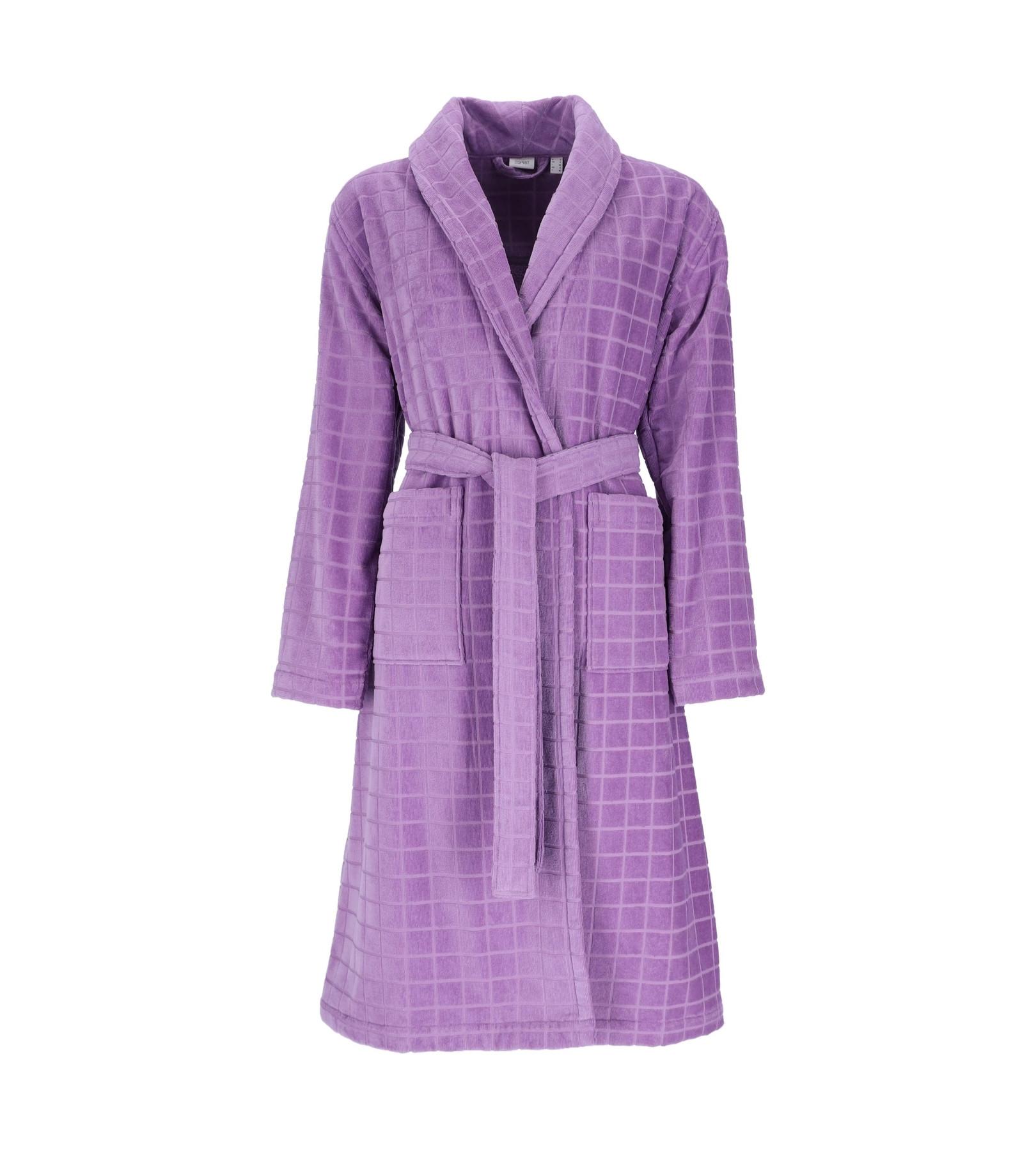 Ce peignoir de bain présente un design classique avec un col châle et une ceinture à nouer pour un ajustement confortable et réglable. Il comprend deux poches plaquées pratiques, ajoutant de la fonctionnalité à son apparence élégante. Le peignoir est conçu avec un motif mosaïque subtil, offrant une texture raffinée.