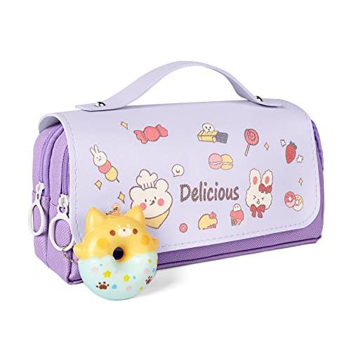 Only-bags.store Trousse à crayons à 3 compartiments, trousse de papeterie , jolie trousse à crayons donuts pour écolier ado