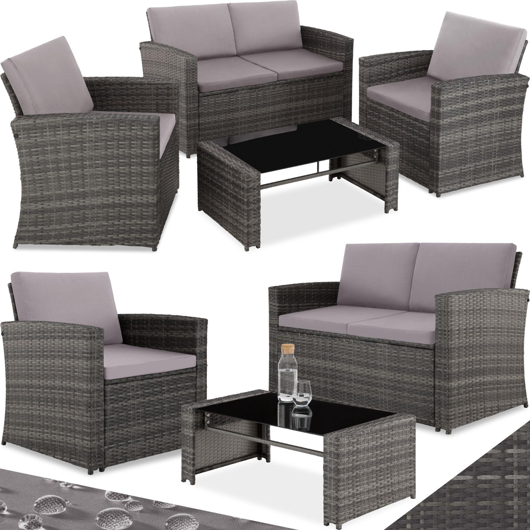 Tectake Canapé de jardin lounge en rotin JESOLO pour 4 personnes