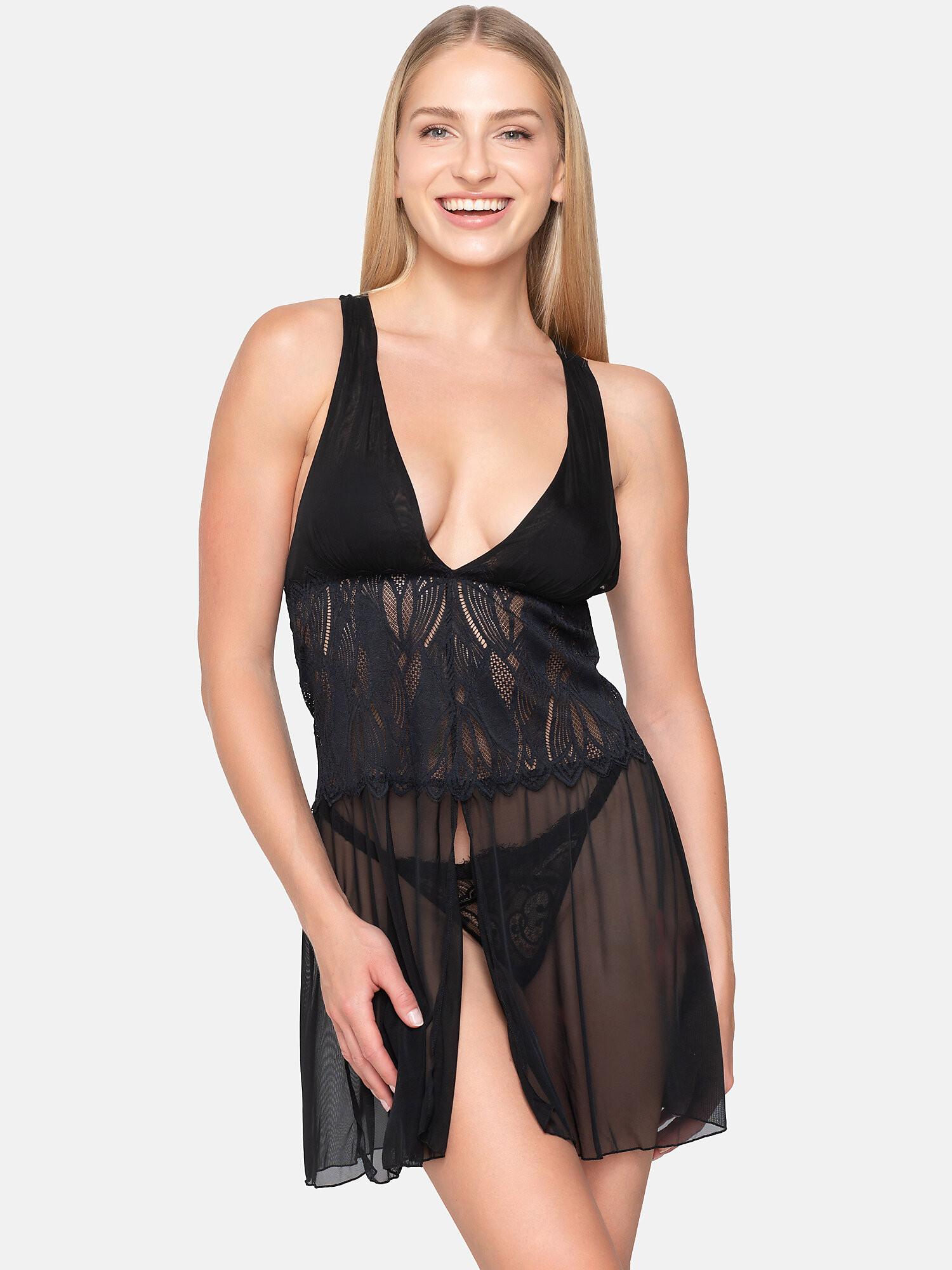 La nuisette Sylvie est un magnifique et sensuel babydoll, parfait pour des nuits intimes. Elle présente une superbe combinaison de dentelle et de tulle transparent. Le buste, en tulle souple, a un décolleté en V profond. Le design inclut un jeu exquis de bretelles croisées dans le dos. La jupe, en tulle transparent, est fendue sur le devant. La dentelle utilisée sur le corps s'inspire de la forme des premières feuilles d'automne, reflétant la beauté trouvée dans la nature.