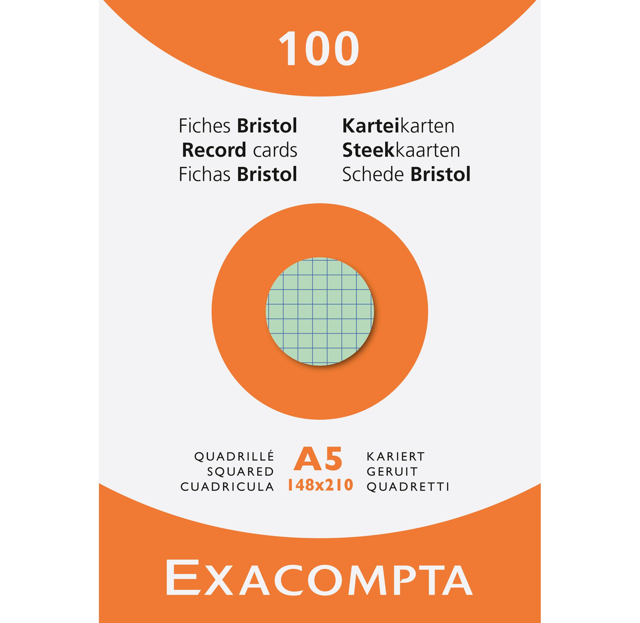 Exacompta Étui de 100 fiches - bristol quadrillé 5x5 non perforé 148x210mm - x 10