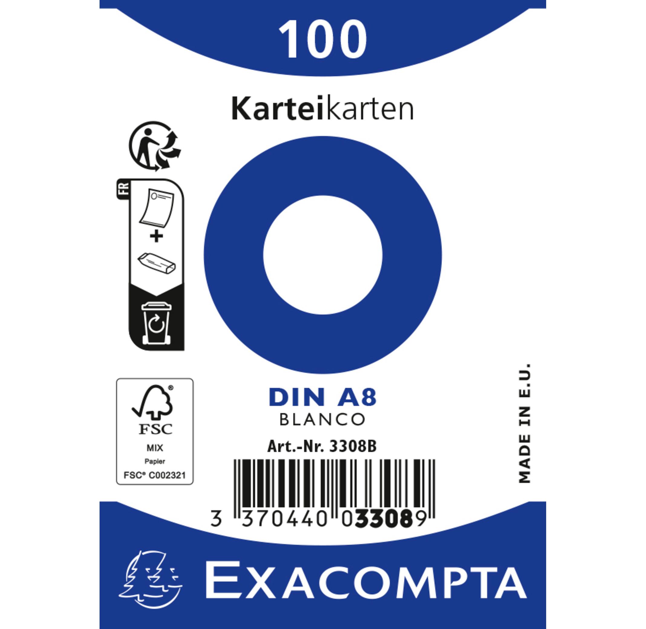 Exacompta, Paquet 100 fiches sous film - bristol uni non perforé 55x74mm - x 48