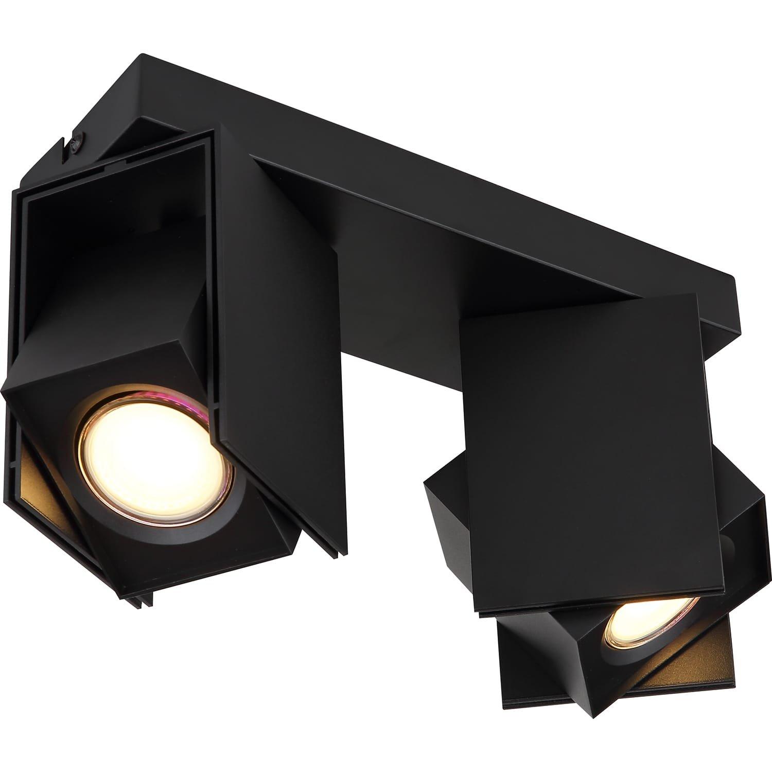 Ce plafonnier moderne impressionne par son design élégant. Sous une forme abstraite, deux boîtiers (26 x 8 cm) en aluminium noir et métal se forment sur le support de plafond rectangulaire. Il y a une douille GU10 dans chacun des deux rectangles, ce qui vous permet de déterminer vous-même la couleur et la luminosité de la lumière, jusqu'à une puissance maximale de 5 watts.
