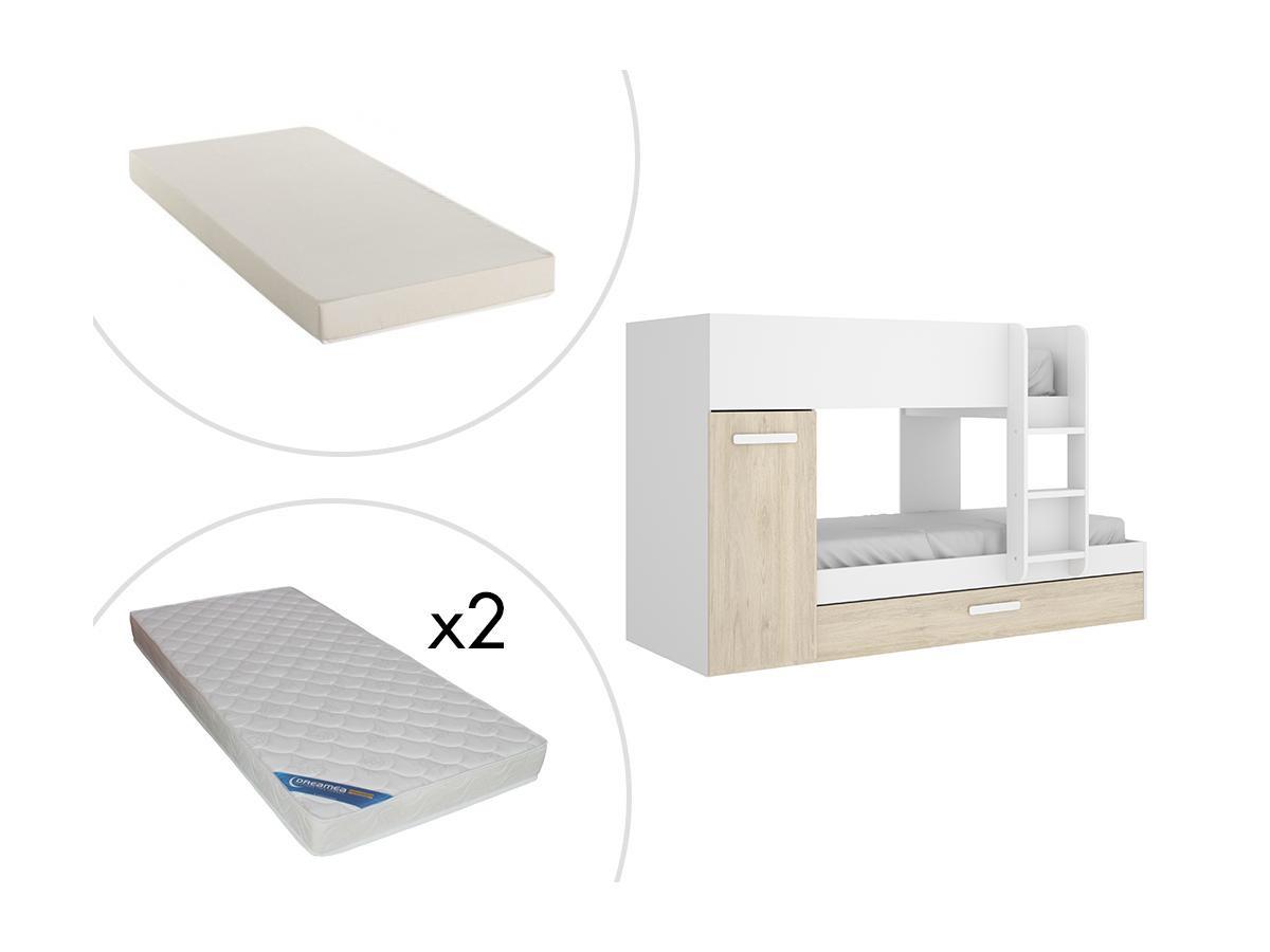 Vente-unique Lits Superposés ANTHONY avec rangements 3 Chêne + matelas