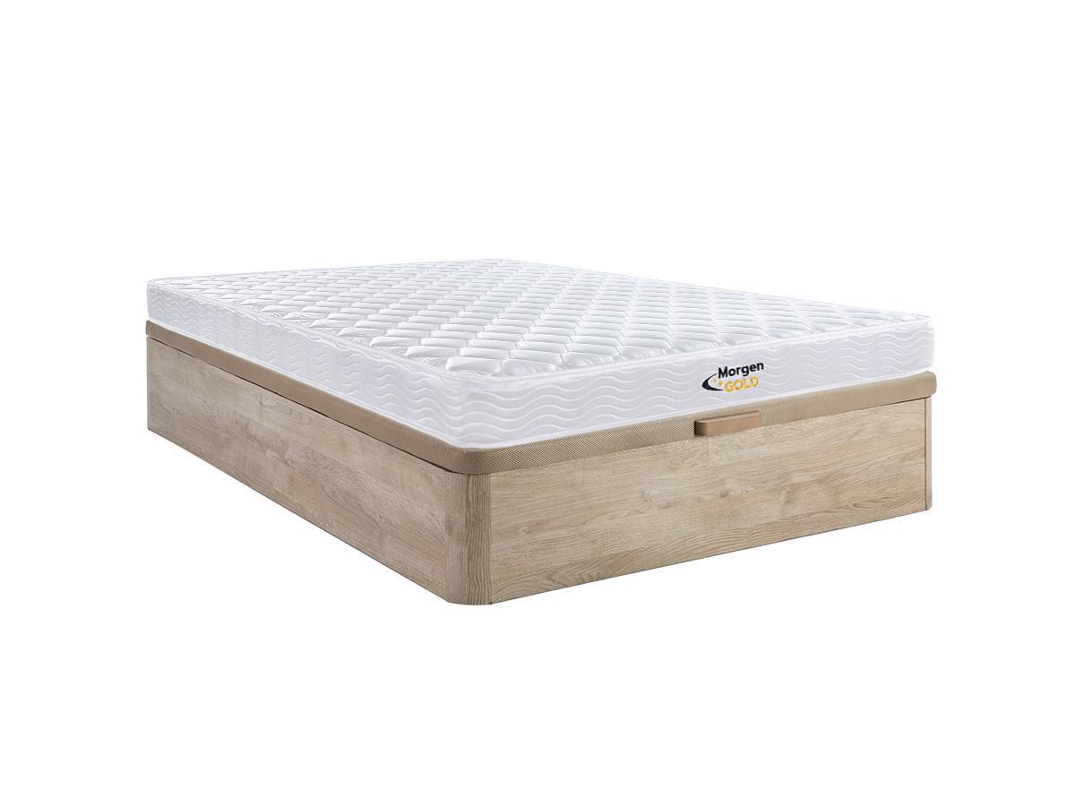 MORGENGOLD, Ensemble 140 x 190 cm sommier coffre naturel clair + matelas ressorts et mémoire de forme ép.15cm - WOLKENLOS de MORGENGOLD