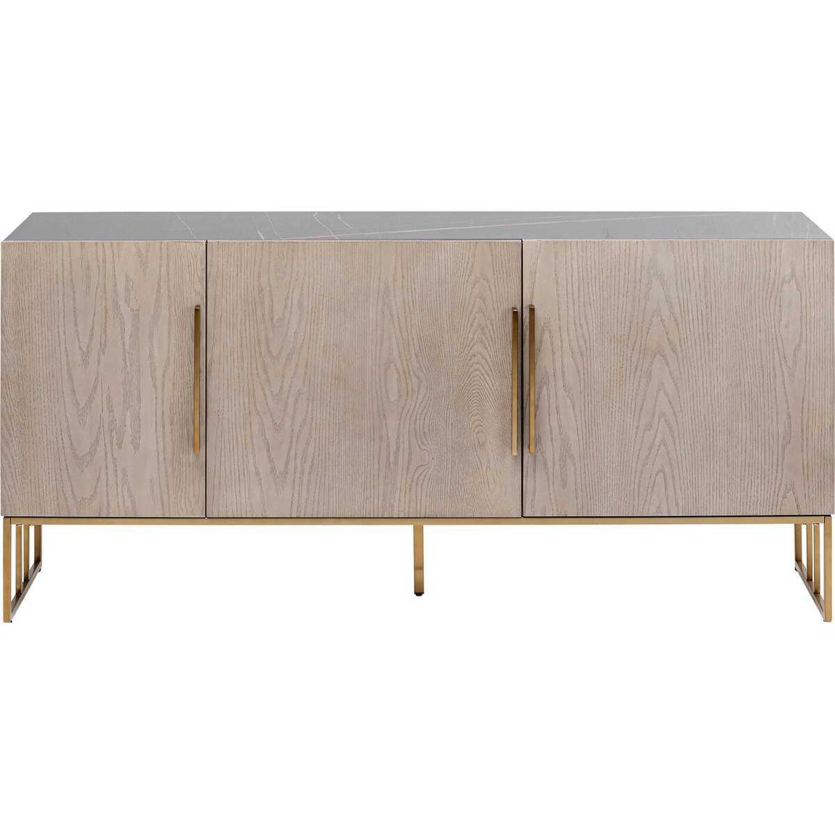 Comme Keypiece dans le salon, buffet dans la salle à manger et grande commode dans la chambre à coucher : les sideboards, highboards et lowboards sont un point fort visuel et résolvent de nombreuses tâches d'aménagement. Ce sideboard compact convient aussi bien au style d'habitat moderne qu'aux pièces classiques et élégantes. Avec des accessoires d'intérieur raffinés en verre ou en métal chatoyant, vous lui conférez tout simplement une note discrète et glamour. Le bois de frêne clair, les poignées et les supports minimalistes apportent de la légèreté à la pièce. À propos du designer : Andreas Weber a déjà reçu plusieurs prix pour son design de produits. Son langage des formes est particulièrement rectiligne et marquant. Ses meubles sont des solitaires, aussi beaux et particuliers que des bijoux.Sideboard design classique et moderne avec des détails de grande qualité de la main du designer de meubles Andreas Weber en exclusivité pour KARE.Les façades et les parties latérales laquées sont travaillées en placage de bois de frêne noble. Le frêne est un bois clair avec une veinure marbrée attrayante.Le highboard a un dessus remarquablement beau en céramique dans les tons de terre. Les poignées et les bâtis sont ennoblis de laiton.Le travail de la céramique fait de chaque sideboard une pièce unique, de légères différences par rapport à l'illustration sont possibles.Valeurs intérieures : Deux étagères et deux tiroirs permettent d'utiliser facilement ce meuble de salon comme solution de rangement de luxe.Informations produit Corps : panneau de fibres de densité moyenne plaqué, frêne massif laqué (placage), plateau supérieur : grès cérame (sintered stone), pied/pieds : acier inoxydable laitonné, poignées : acier inoxydable laitonné, capacité de charge max. 100 kg, livraison partiellement démontée, MDF plaqué frêne