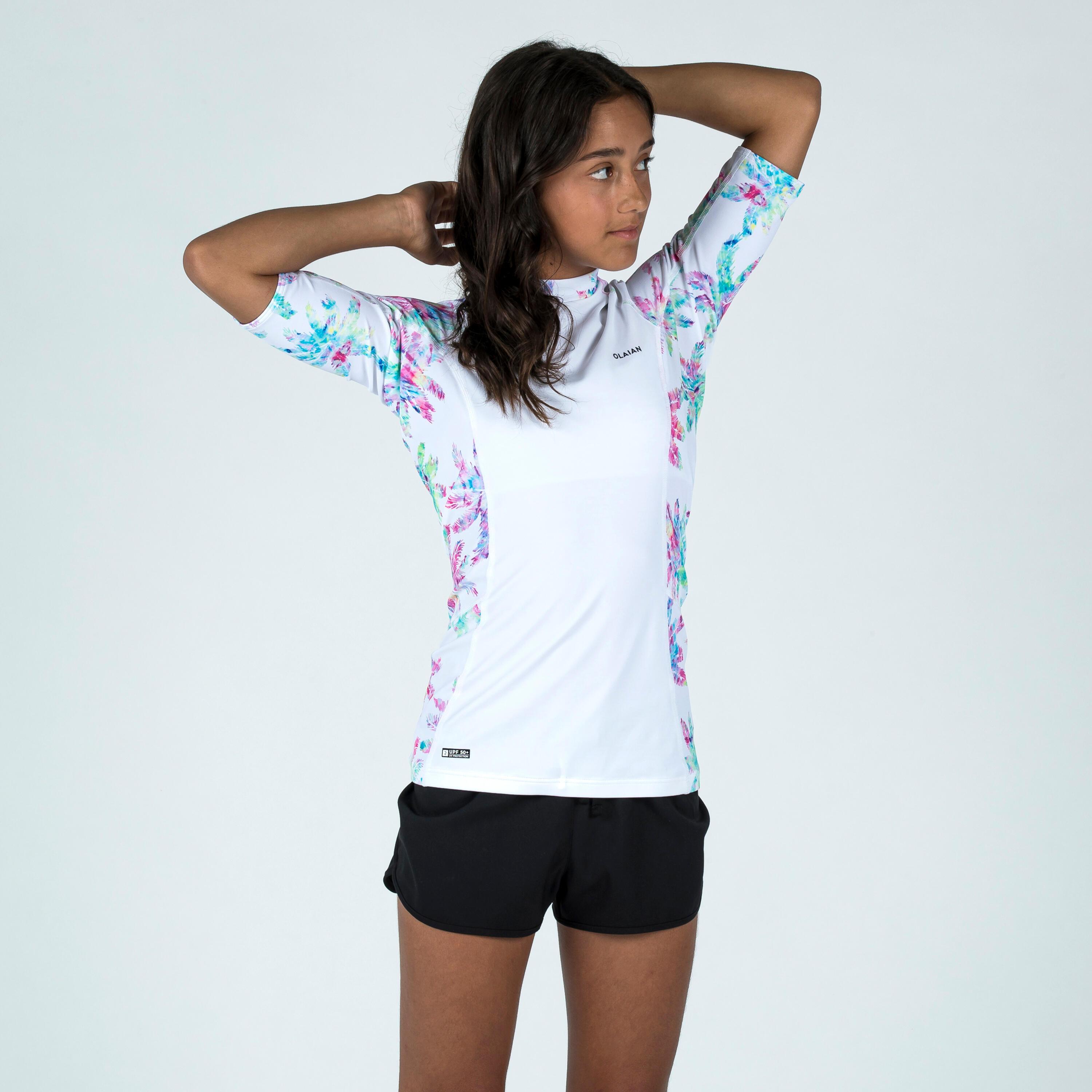 Tee shirt anti-UV enfant manches courtes pour protéger du soleil, même dans l'eau, et limiter les irritations au contact de la planche. Coupe ajustée et composant stretch et confort !