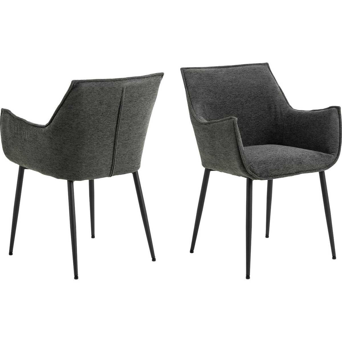Chaises de salle à manger modernes avec accoudoirs Tissu chenille gris foncé, coutures françaises Pieds en acier noir revêtus par poudre, de forme arrondie Certifié FSC pour la gestion durable des forêts