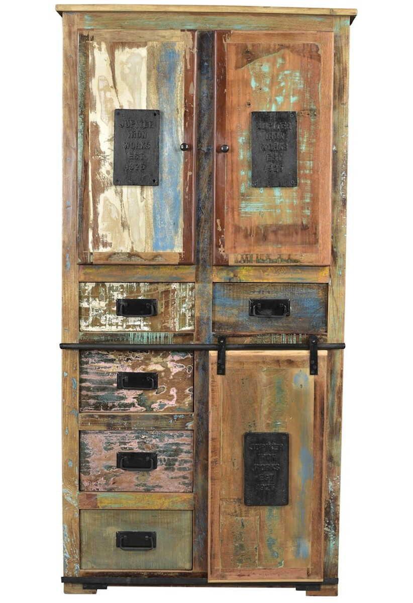 Vintage Colored Agra ? c'est sur cette île de rêve dans la chaleur tropicale de l'océan Indien que nous avons vu pour la première fois des meubles fabriqués à partir de vieux bateaux de pêche. Et avec près de 4 millions d'habitants sur une île, il y a beaucoup de bateaux de pêche ? Ceux-ci sont traditionnellement peints dans les couleurs les plus diverses, des couleurs que l'on retrouve toujours à Bali : des arbres à fleurs tropicaux multicolores comme les frangipaniers, les bougainvilliers ou les hibiscus, des tons de vert comme dans les rizières en terrasses d'Ubud, du bleu comme le ciel, mais aussi du noir comme la lave refroidie des volcans présents en abondance. Toutes ces couleurs se retrouvent dans les meubles de cette série. Grâce à un "œil" habile, le bois est "posé" de telle sorte qu'il forme à nouveau une image harmonieuse. La combinaison de traces d'utilisation prononcées et de métal "vieilli" donne un "design d'usine" d'un genre particulier.