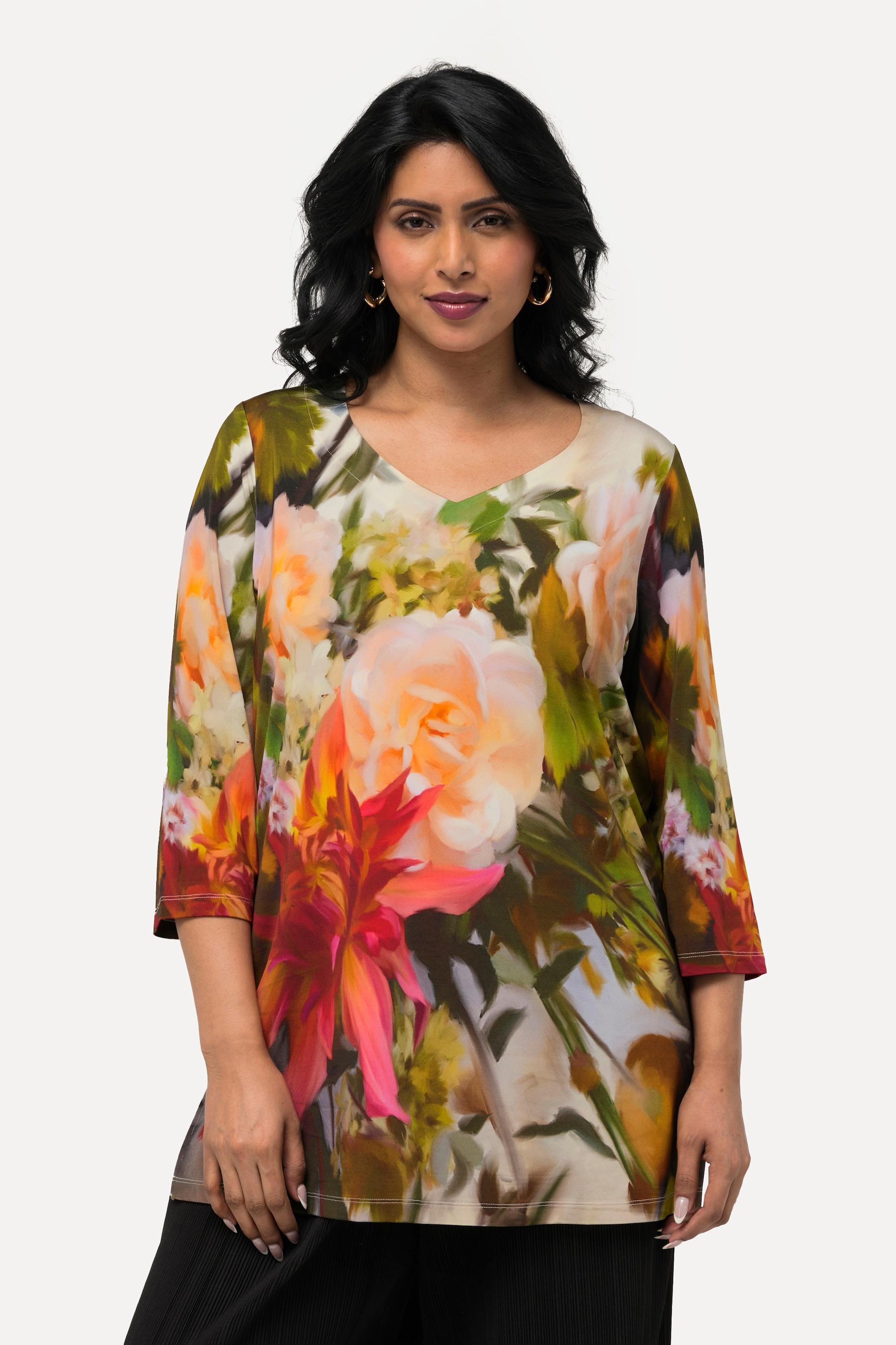 Ulla Popken T-shirt Slinky Fleuri Décolleté Cœur Manches 3/4
