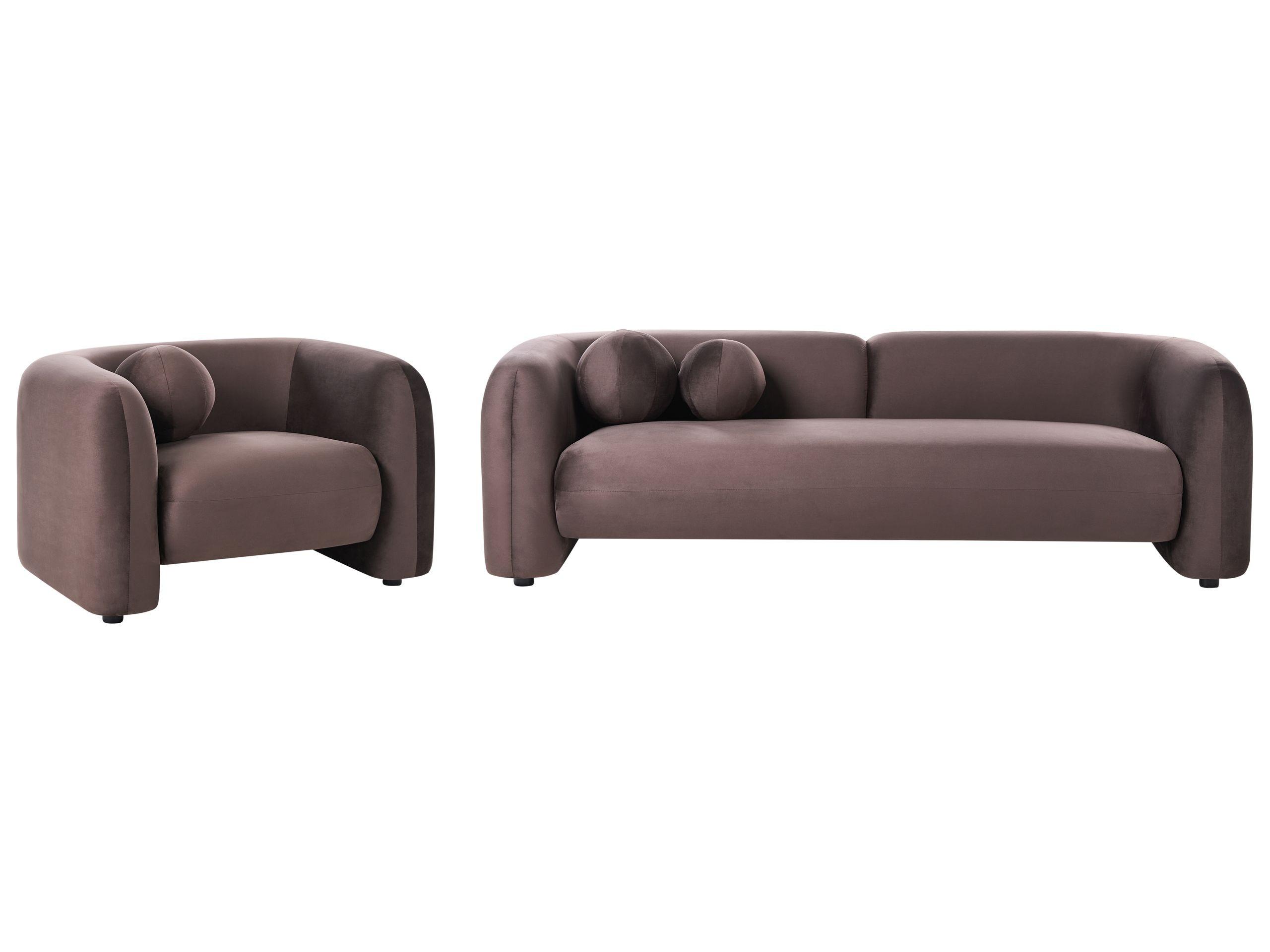 Ensemble de salon classique en velours avec coussins ronds. Cet élégant ensemble de salon glamour deviendra rapidement votre pièce préférée. Confectionné dans un velours lisse, il présente un aspect délicieusement doux et moelleux qui embellit l'ambiance de la pièce. En plus d'être agréables au toucher, le canapé et le fauteuil sont également durables et ne nécessitent pas d'entretien fréquent. Une assise épaisse et des coussins supplémentaires, avec des housses amovibles, garantissent un confort optimal lorsque vous regardez la télévision, passez du temps avec vos amis ou vous détendez après le travail.
