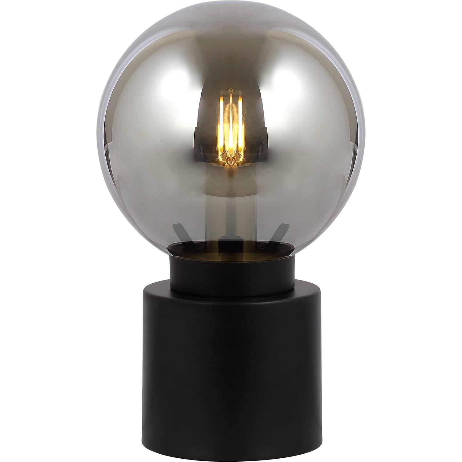 Lampe à poser métal noir mat, verre fumé, interrupteur à bascule sur le câble, : 150mm, H: 245mm, longueur de câble 1500mm, exclu 1x E14 25W 230V.