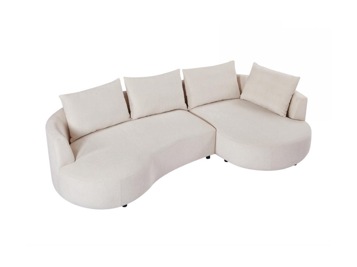 Vente-unique, Canapé d'angle droit en velours texturé beige LOUSADO
