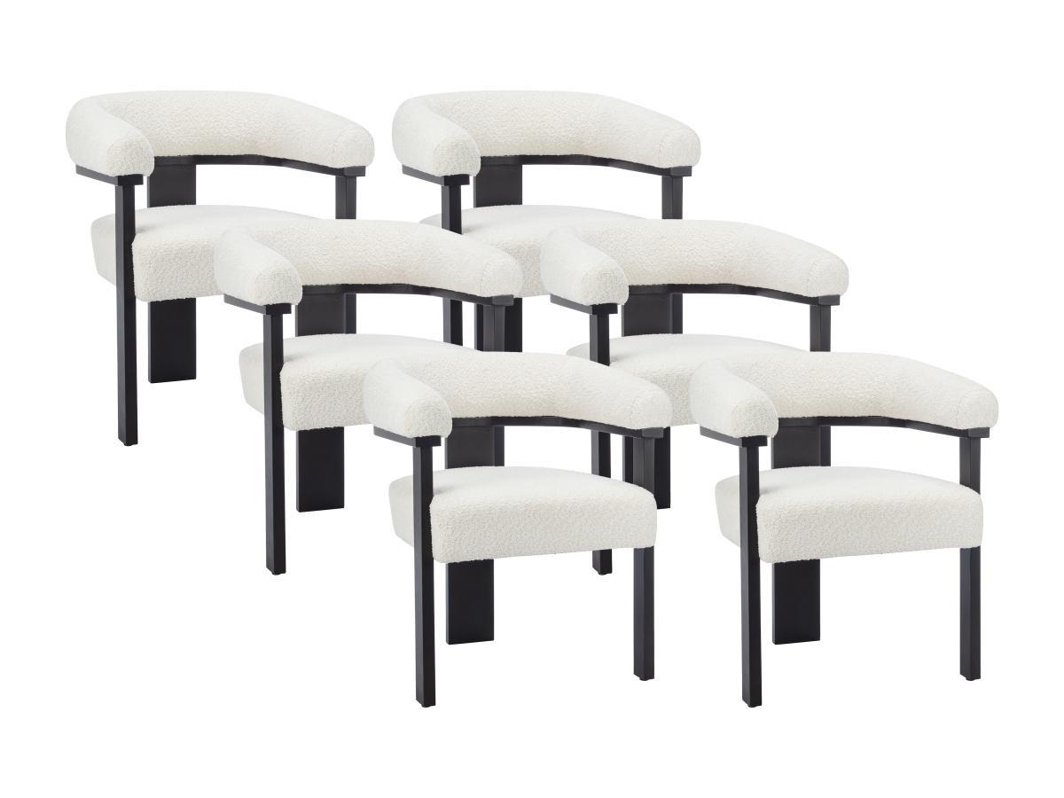PASCAL MORABITO Lot de 6 chaises avec accoudoirs en tissu bouclette et bois d'hévéa - Blanc et noir - LIVELIA de Pascal MORABITO