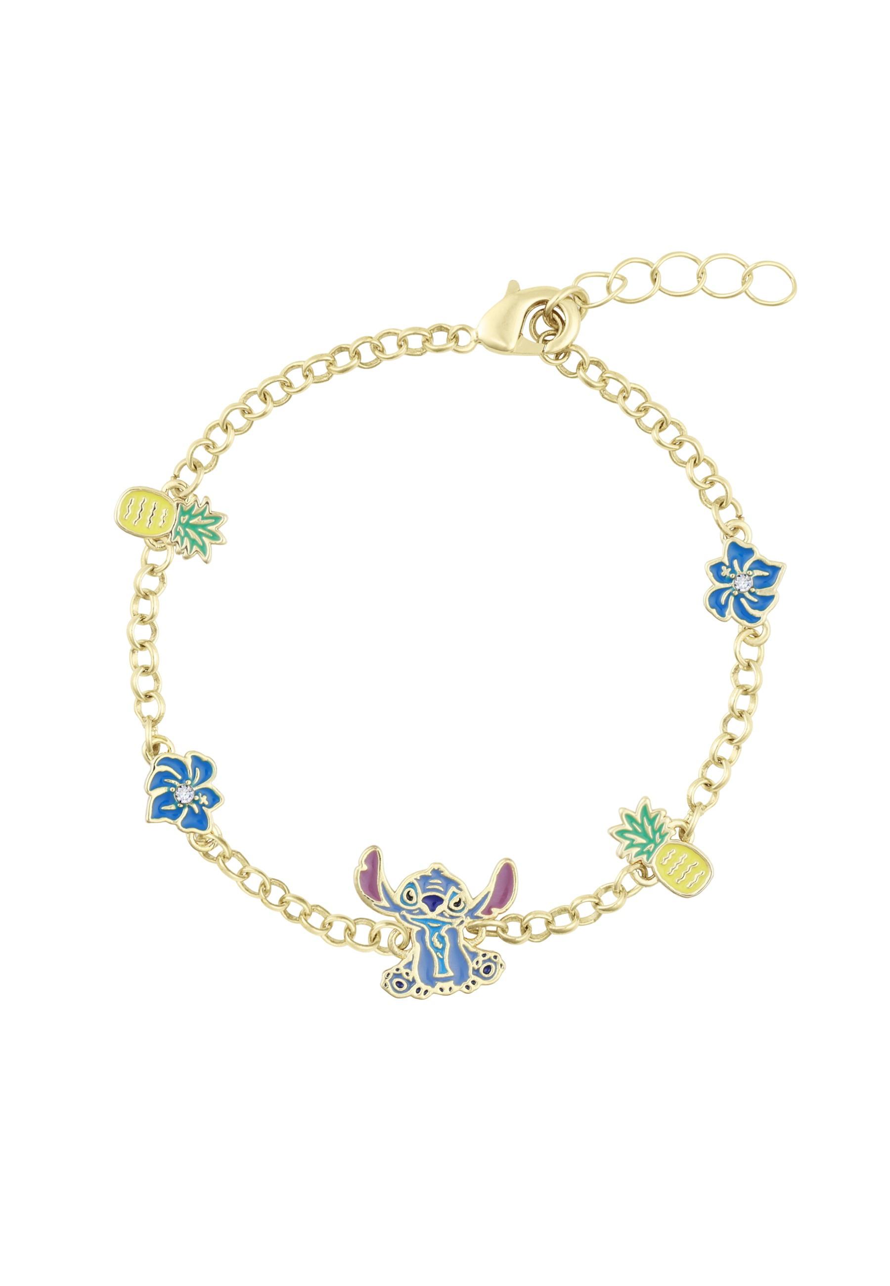 Apportez une touche tropicale à votre style avec ce bracelet en laiton plaqué or Stitch Ananas & Fleur ! Avec une combinaison ludique de pendentifs ananas et fleur sur le thème de Stitch sur une chaîne en laiton brillante plaquée or, parfait pour les fans de Disney qui aiment les accessoires élégants et amusants. Le bracelet est disponible en taille unique (ONE SIZE) et s'adapte à la plupart des poignets.