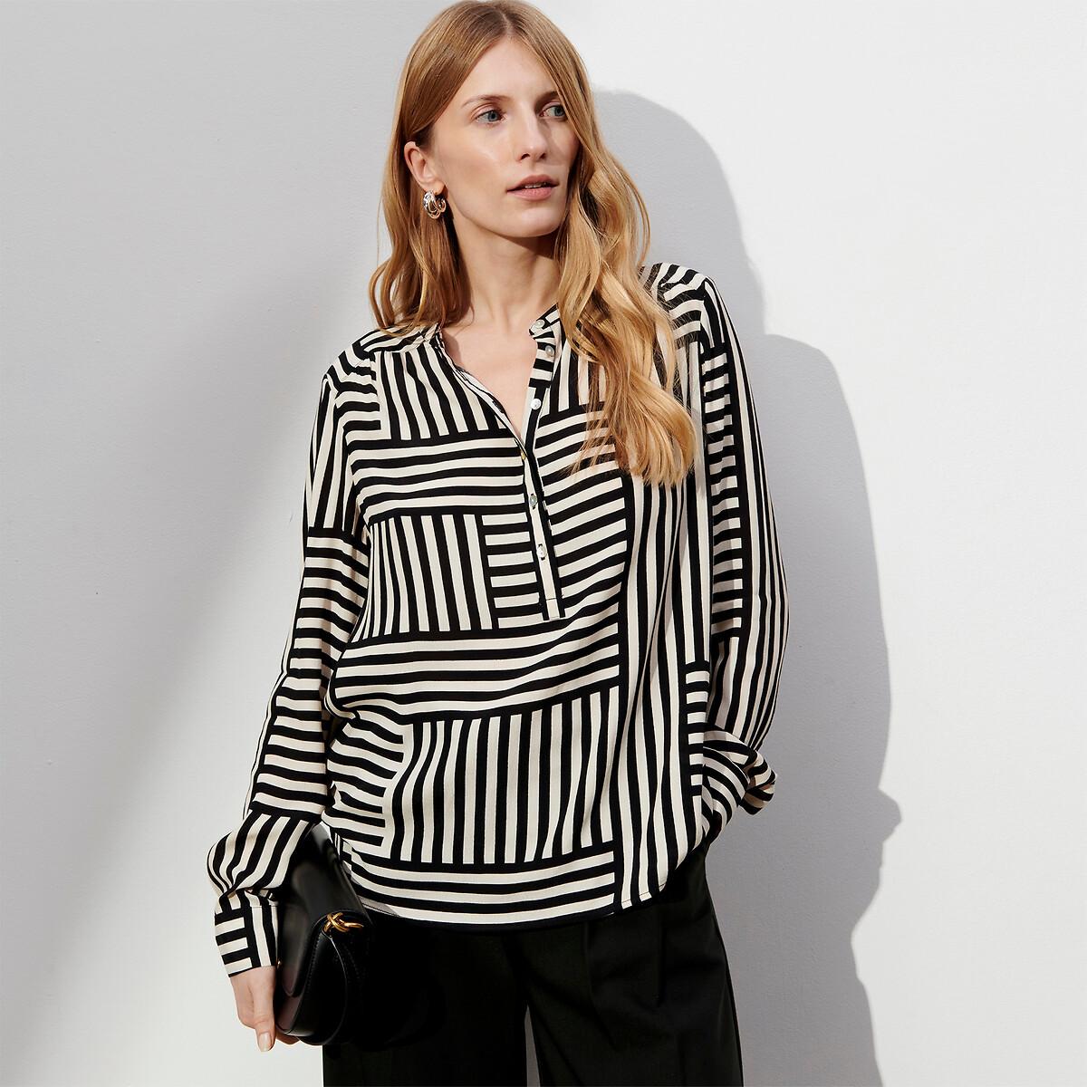 Son imprimé graphique bicolore booste les looks de la saison. Avec ses manches longues et son col tunisien, cette chemise fluide en viscose joue la carte de la féminité. Vous la porterez en toute occasion.