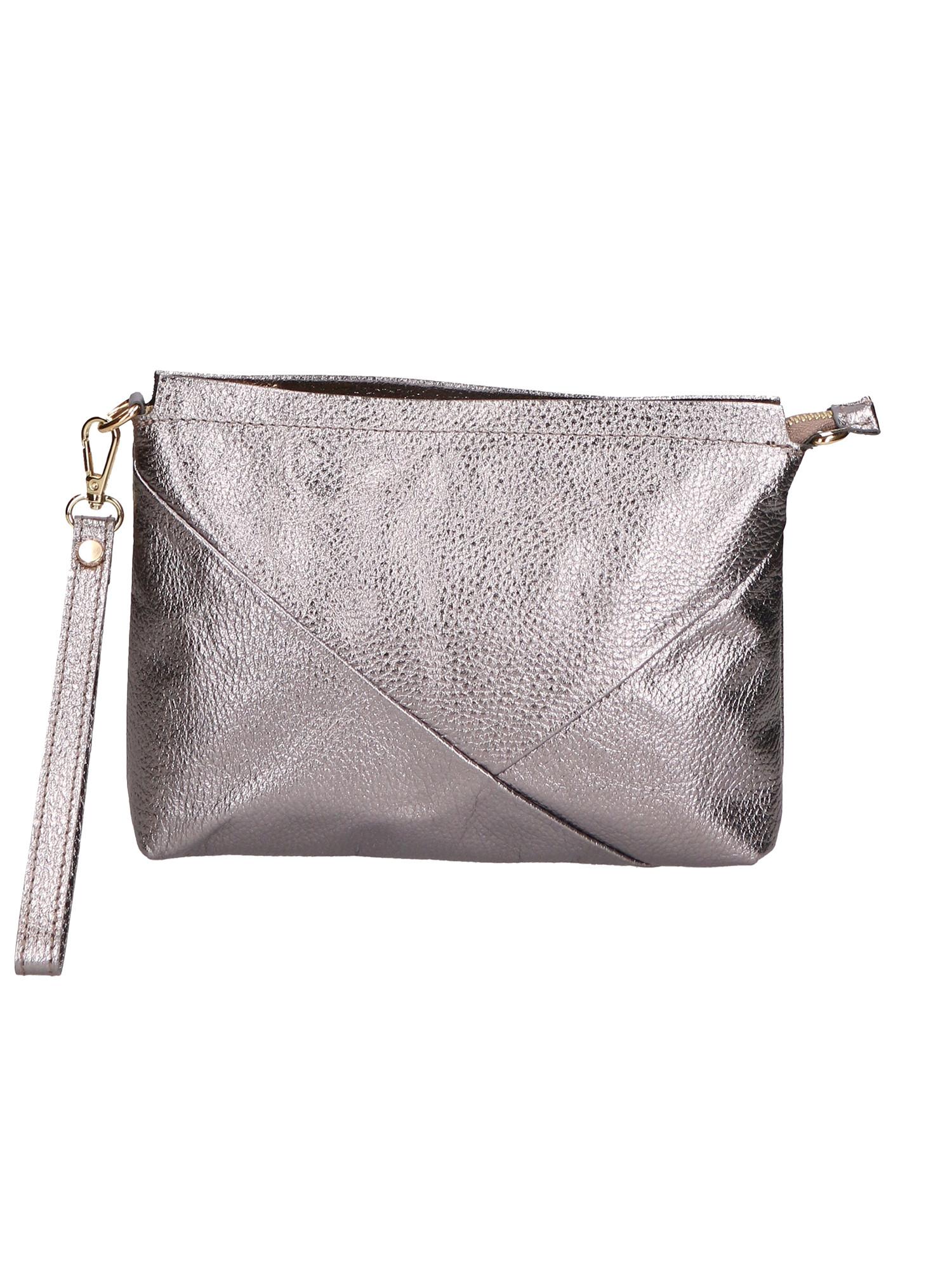 Cette pochette est un accessoire élégant pour diverses occasions. Son design compact la rend facile à transporter, tandis que la finition métallique ajoute une touche de glamour à n'importe quelle tenue. Ce produit artisanal italien est fabriqué en cuir dollar laminé véritable.