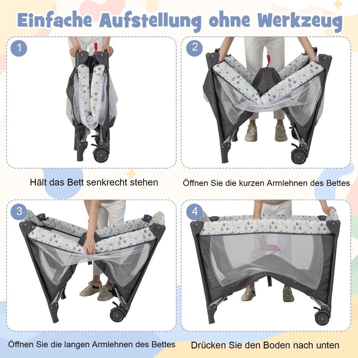 Répondez à tous vos besoins avec ce lit de voyage multifonctionnel, conçu pour rendre la parentalité plus facile et plus pratique. Ce lit bébé polyvalent combine un berceau, une table à langer et un parc en une seule unité compacte, adaptée aux nourrissons et aux tout-petits. Avec ses bords arrondis anti-collision, il assure la sécurité de votre enfant en évitant les blessures, tandis que la structure de soutien à 7 points offre une stabilité exceptionnelle. La table à langer est idéale pour changer les couches, s'habiller et même masser bébé. De plus, la poche de rangement vous permet de garder les objets essentiels de bébé à portée de main. Ce lit bébé portable avec matelas est facile à installer et à replier sans aucun outil, et il est livré avec un sac de transport pratique pour un transport sans effort.