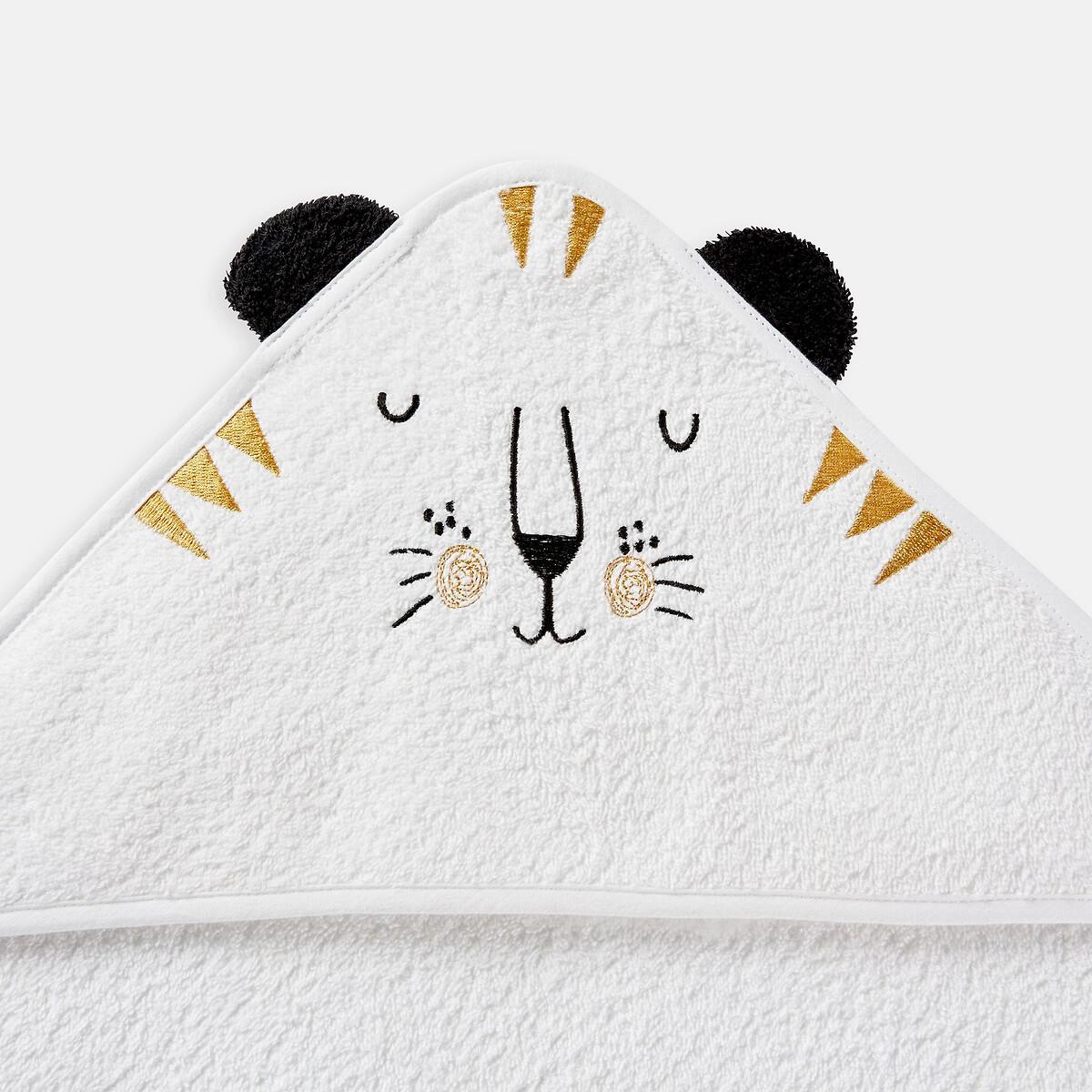 La cape de bain bébé à capuche brodée Kalou. Une éponge toute douce pour emmitoufler bébé dès la sortie du bain.