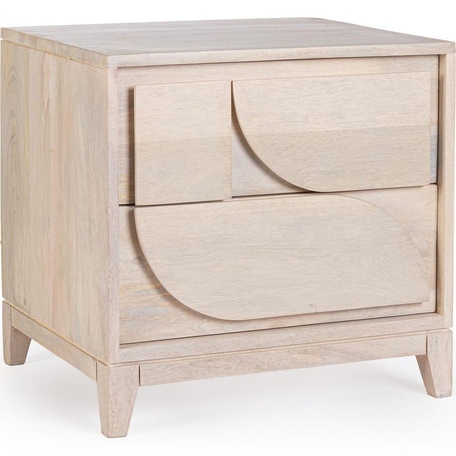 Table de nuit en bois de manguier et MDF, couleur naturelle, 47 x 40 x 46hStructure en bois de manguierDos et fond des tiroirs en MDFvernis en nitrocellulose avec teinture blanche