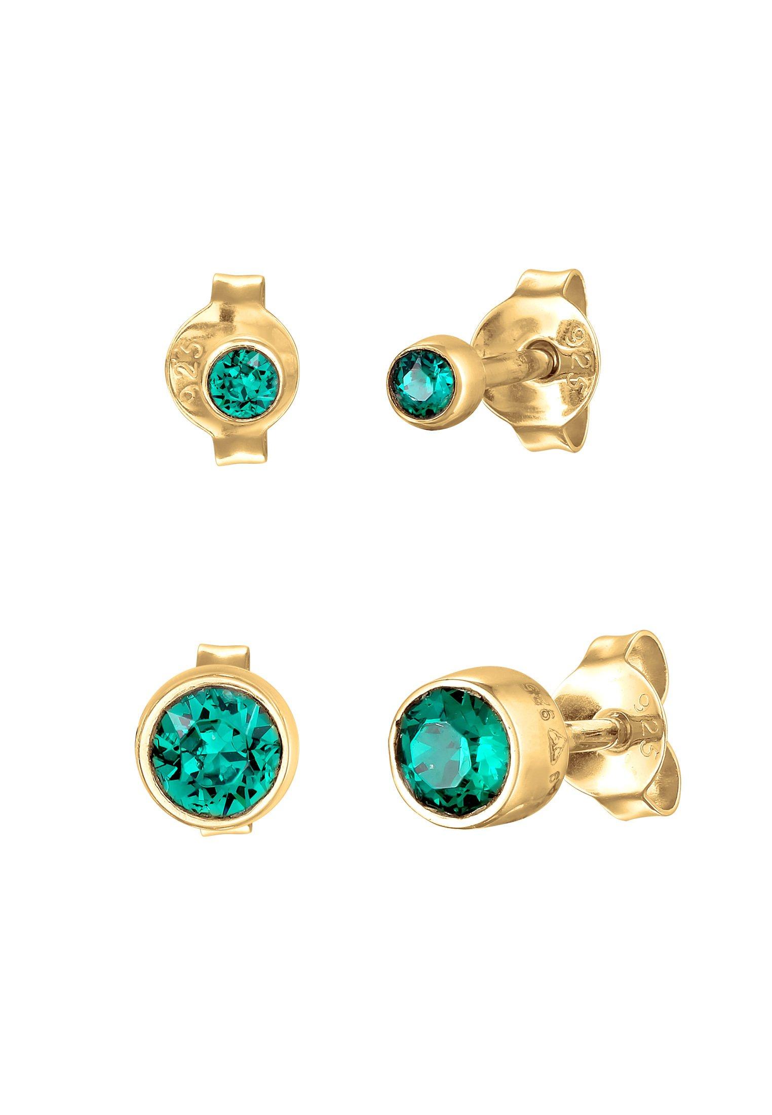 Elli Boucles d'Oreilles Femmes Clous D'oreilles Set Rond Avec Cristaux Vert