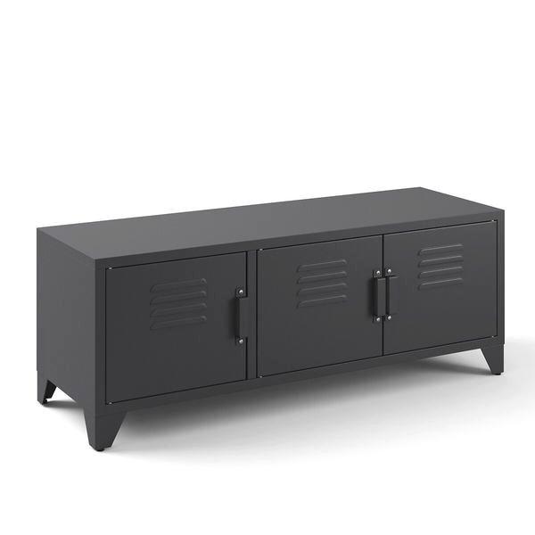 Caractéristiques du meuble TV acier style indus, 3 portes, Hiba :