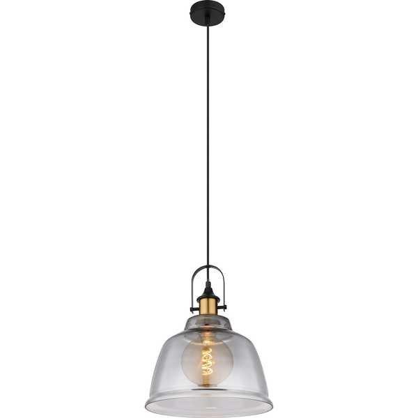 Suspension métal noir, laiton, verre, : 300mm, H: 1200mm, exclu 1x E27 60W 230V.