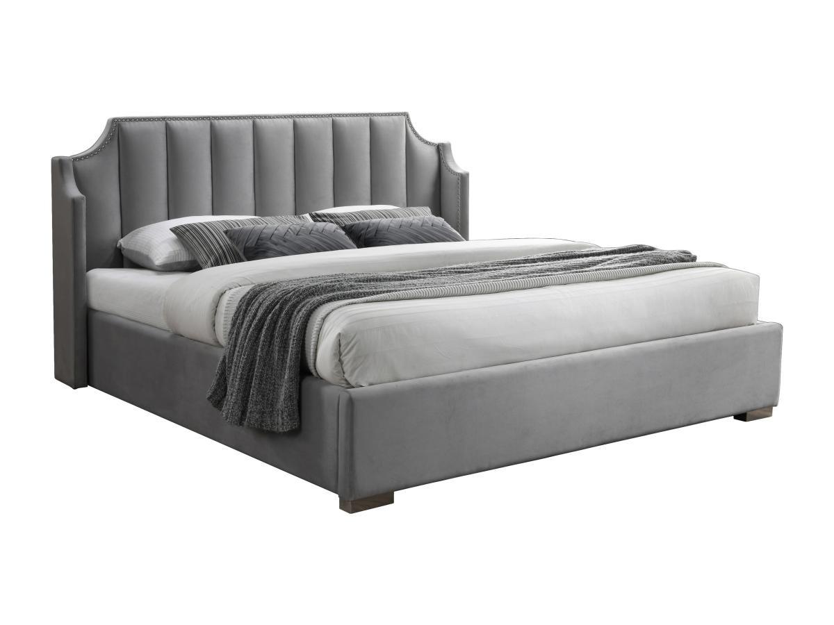 Vente-unique, Lit coffre 140 x 190 cm avec tête de lit incurvée - Velours - Gris clair - TEOMIS