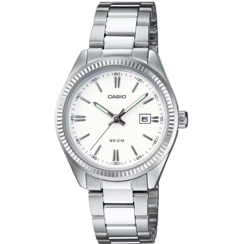 Man sagt, Einfachheit sei der Schlüssel zum Erfolg, und das gilt auch für Uhren. Trends kommen und gehen, aber bestimmte Designstile bleiben trotz des unaufhaltsamen Wandels zeitlos. Gerade diese Casio verkörpert den Geist von einfach und klassisch in seiner reinsten Form: ein schlichtes Zifferblatt mit Index und Datumsfenster. Nicht mehr und nicht weniger. Aber es gibt noch zwei weitere Merkmale einer Uhr, zu denen man nur schwer nein sagen kann: ein integriertes Gehäuse und Armband sowie ein Zifferblatt in leuchtenden Farben. Kein Wunder also, dass die neue LTP-Uhrenserie von Casio alle sofort in ihren Bann zieht. Die LTP-Serie ist seit den 1980er Jahren fester Bestandteil des Portfolios der Marke und bietet vor allem robuste Damenuhren aus Edelstahl mit klaren, gut ablesbaren Zifferblättern und einfachen Quarzwerken. Mit dem Aufkommen farbiger Zifferblätter in jüngster Zeit hat Casio die Kollektion um eine Reihe eleganter Farbtöne erweitert. Das Gehäuse erfüllt alle Kriterien einer typischen Armbanduhr mit einem superschlanken, tonnenförmigen Gehäuse mit glatter, hochglanzpolierter Lünette und Gehäuseseiten sowie einem gebürsteten Gehäusemittelteil. Dazu kommen eine kleine geriffelte Krone bei 3 Uhr, die bis 50 Meter wasserdicht ist, ein geschlossener Gehäuseboden und Mineralglas. Es überrascht nicht, dass die größte Attraktion der Casio LTP das Zifferblatt ist. Die metallisch gebürstete Oberfläche zieht die Aufmerksamkeit auf sich. Das Zifferblatt ist lichtreflektierend und hat ein einfaches Layout mit erhabenen, polierten Stabindexen und schlanken, nadelförmigen Zeigern für Stunden, Minuten und Sekunden. Bei 3 Uhr befindet sich ein Datumsfenster mit weißem Hintergrund, bei 12 Uhr ist das Casio-Logo und bei 6 Uhr der Wasserdichtigkeitsindex in weiß aufgedruckt. Die Uhr verwendet das Casio-Modul 1333 mit einer Ganggenauigkeit von +/- 20 Sekunden pro Monat. Die Batterielebensdauer wird auf 3 Jahre geschätzt.