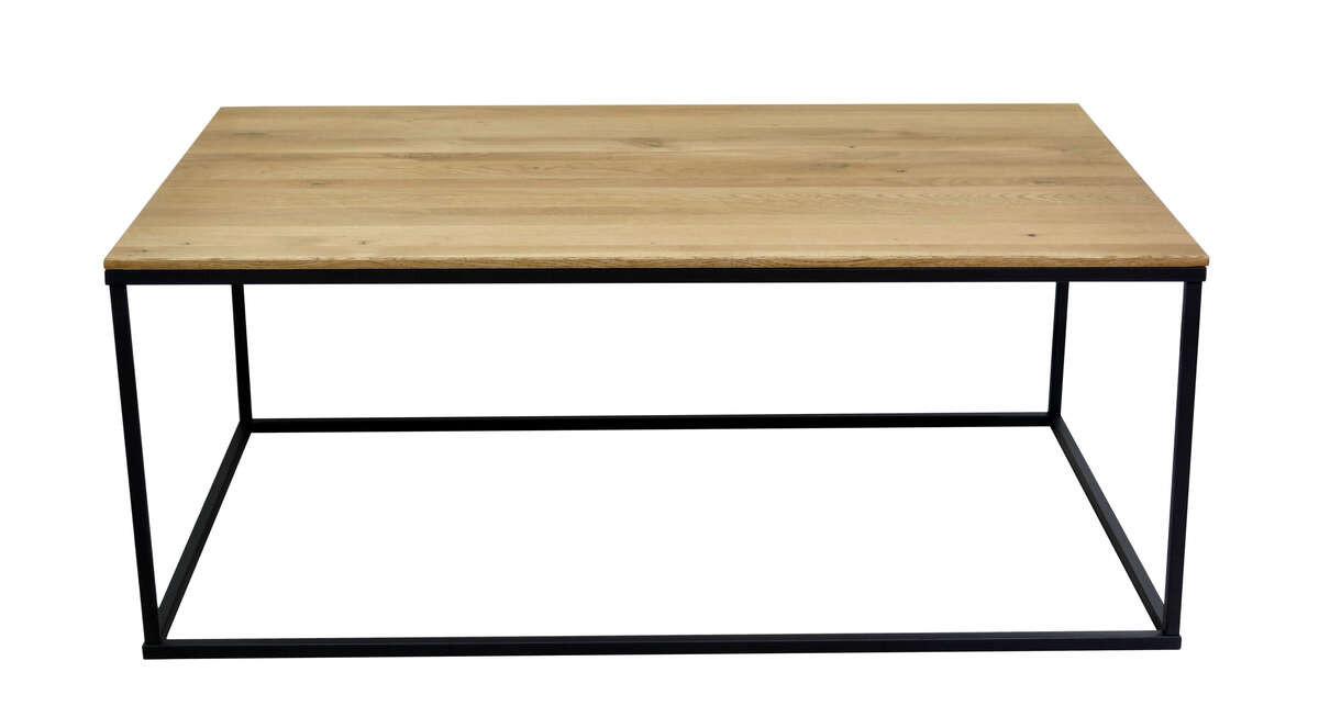 Table basse avec plateau de 18 mm en chêne sauvage huilé et pieds en métal (revêtus par poudre), couleur naturelle et noire, 100 x 60 x 40 cm