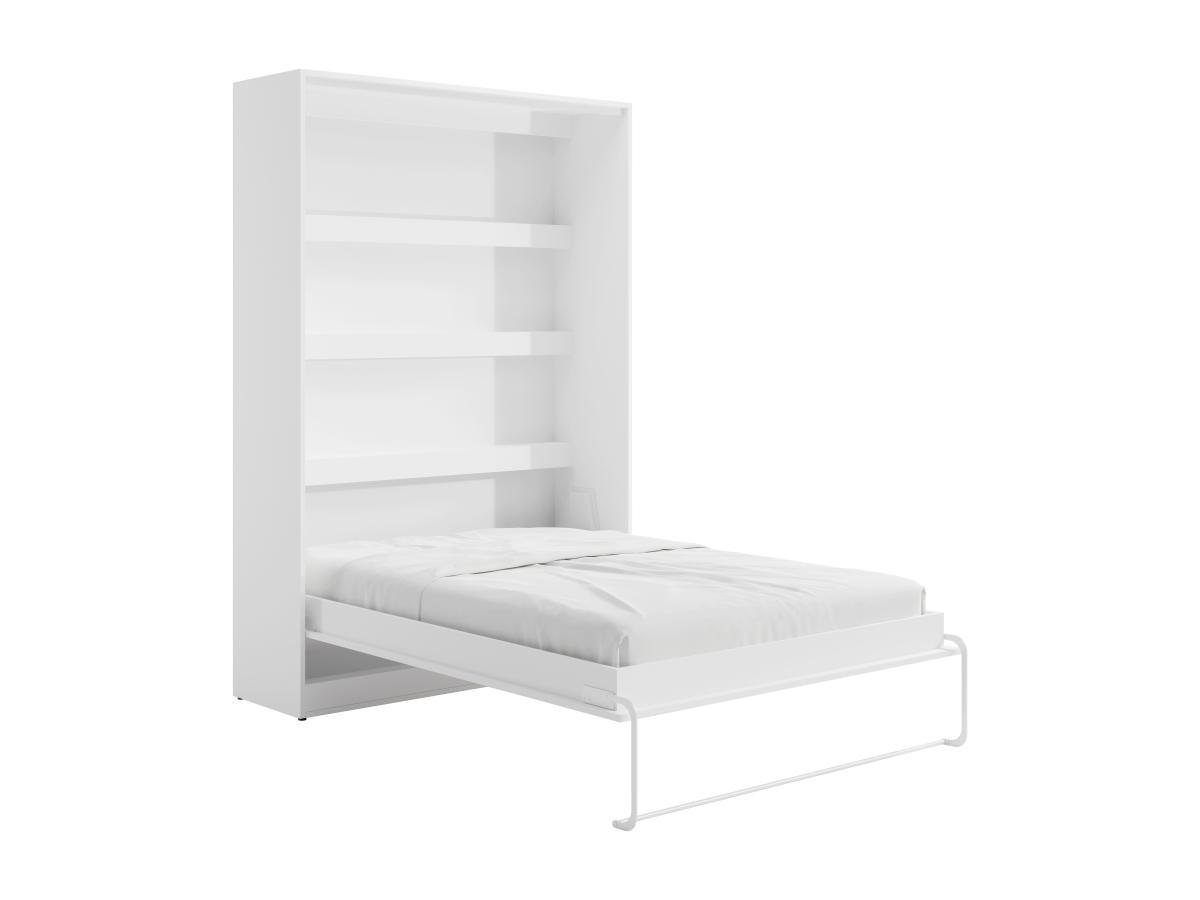 Vente-unique Lit escamotable 140 x 200 cm - Ouverture verticale manuelle - Avec LEDs - Blanc - RAPILI