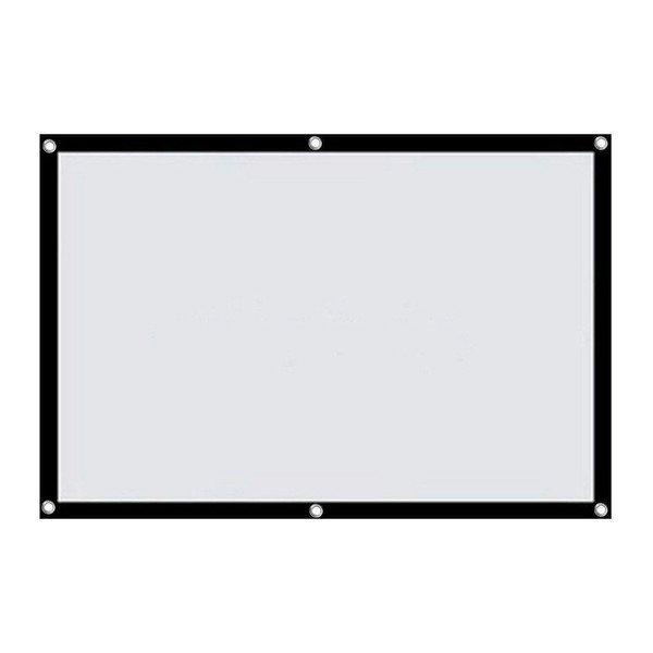Le format d'écran 16:9 et la diagonale de 100 pouces offrent une surface de projection de 2,20 m x 1,25 m. L'écran peut être facilement installé n'importe où pour une utilisation immédiate et peut être fixé avec des crochets, du ruban adhésif ou des cordes sur les murs, au plafond ou aux arbres, etc. De cette façon, l'écran peut être placé dans la position idéale à n'importe quel endroit.