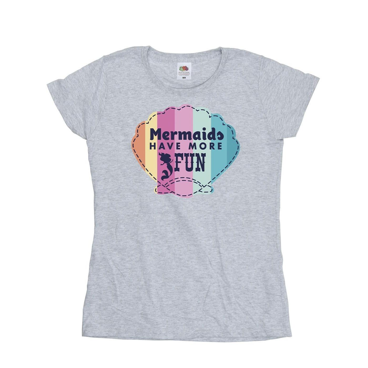 Ce T-shirt présente un graphique ludique inspiré de La Petite Sirène, ce qui en fait un ajout charmant à toute garde-robe décontractée. Le design met en valeur un coquillage coloré avec la phrase « Mermaids Have More Fun » et une silhouette d'Ariel, ajoutant une touche de fantaisie et de caractère.