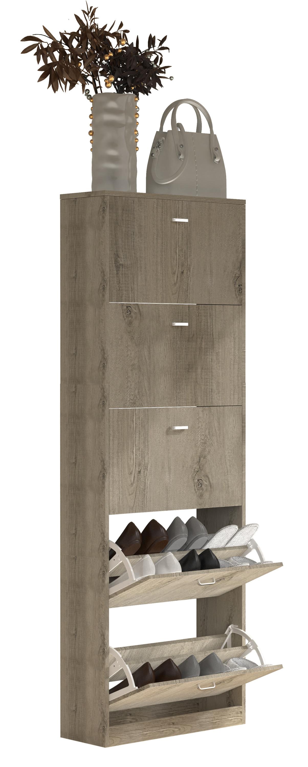VCM, Étagère en bois Kipper Étagère à chaussures Armoire à chaussures Basculement de chaussures 5 abattants Sipos