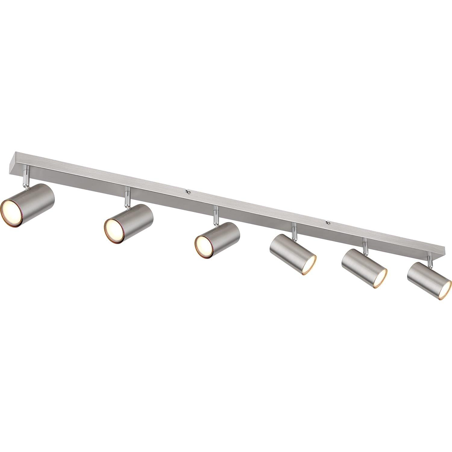 Spot métal nickel mat, métal nickel mat, métal chromé, LxlxH : 1150x60x120mm, sauf 6x GU10 25W 230V.